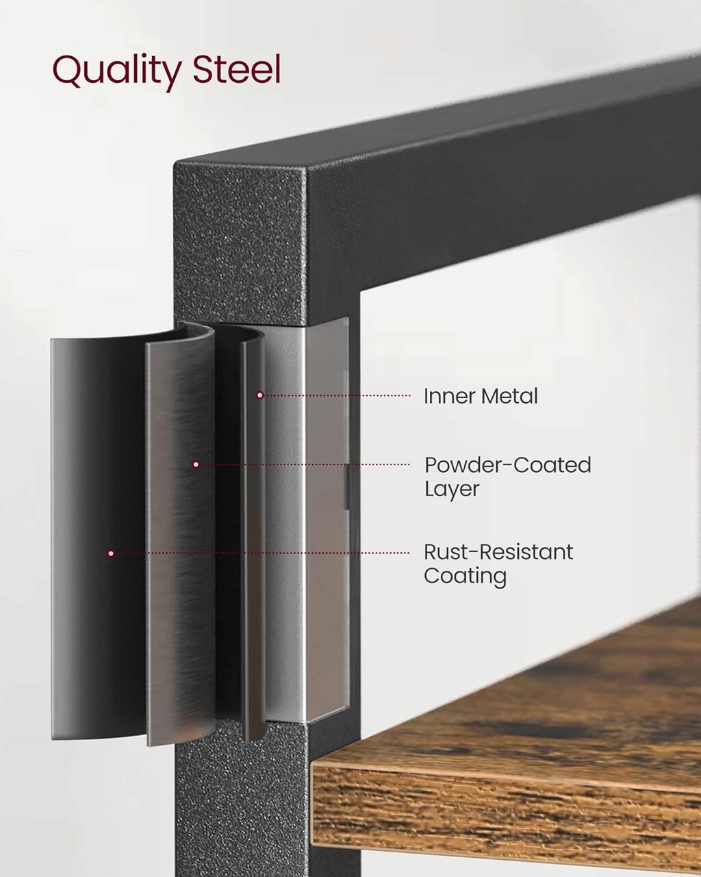 Biblioteca include un kit anti-inclinare care se fixeaza de perete pentru un plus de stabilitate.