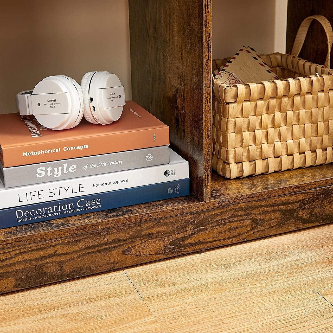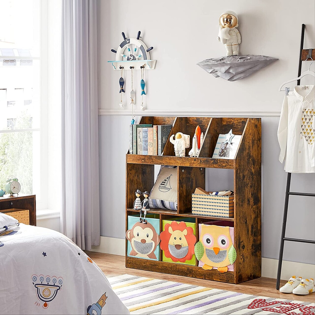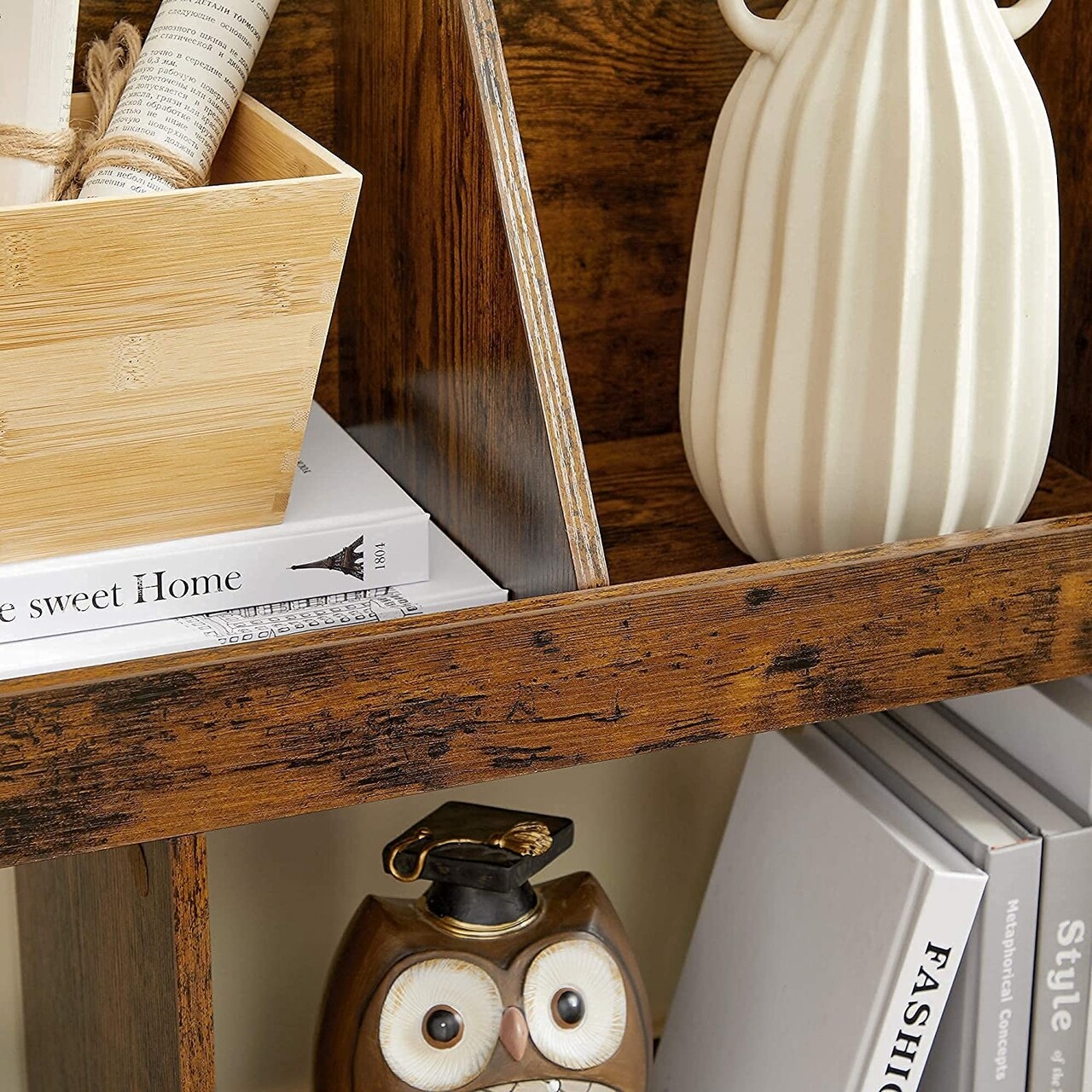 Corp biblioteca Cubby, Vasagle, 90 x 28 x 100 cm, placaj/otel, maro rustic