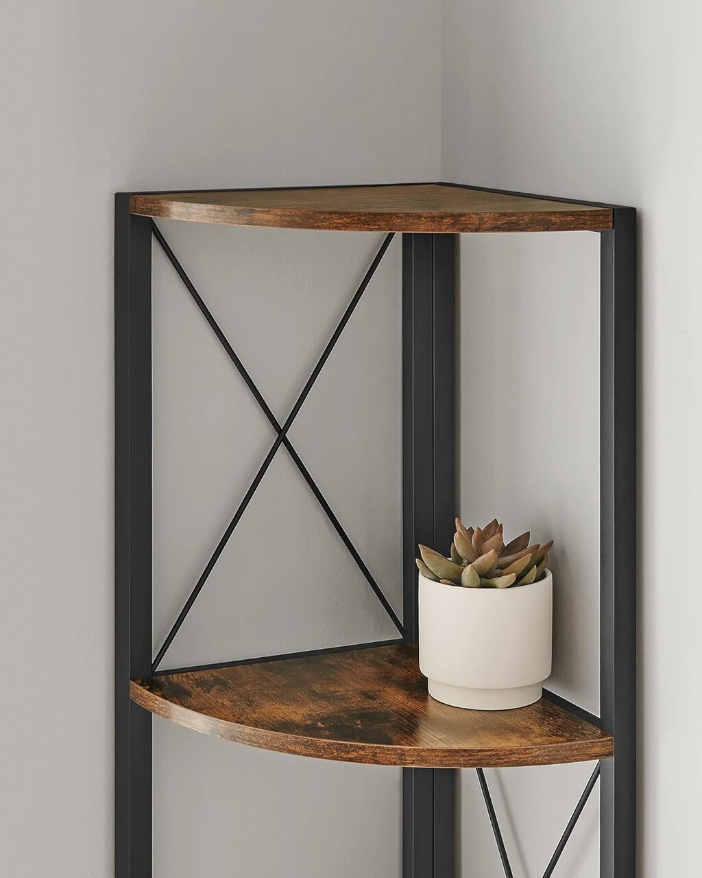 Corp biblioteca de colt cu 5 rafturi, Vasagle, 30x30x160 cm, PAL/otel, maro rustic