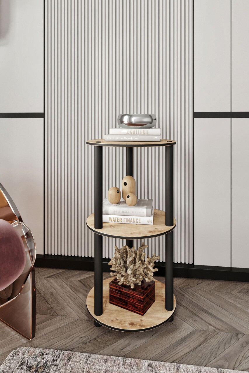 Corp biblioteca, Hanah Home, Bookcase 3-Tier Round, 34x72x34 cm, MDF , Stejar