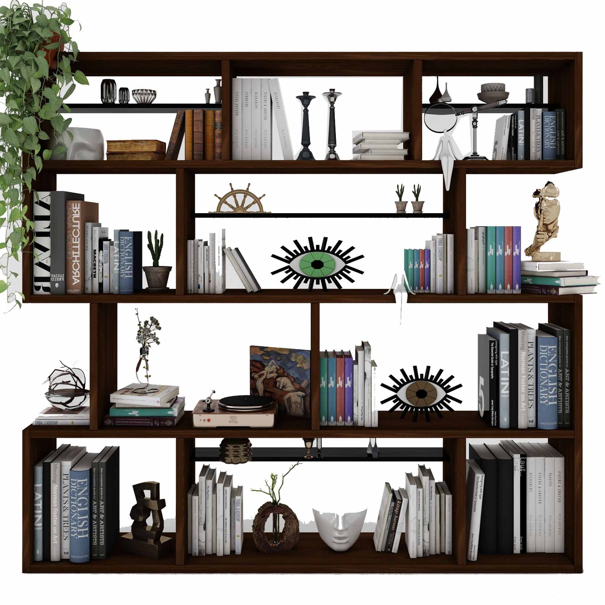 Corp biblioteca, Hanah Home, CPT6007-200, 200x200x30 cm, Lemn, Maro