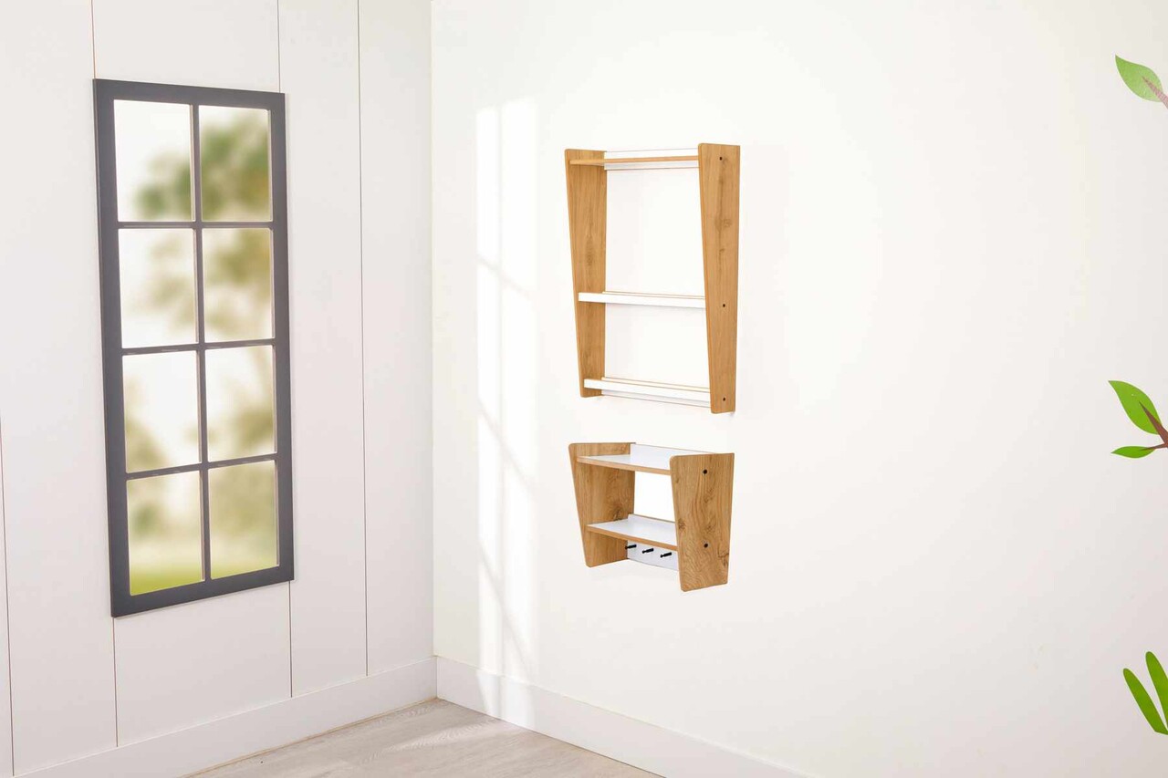 Corp biblioteca, Hanah Home, Crane Wall, 47x70x16 cm, Alb / Natural