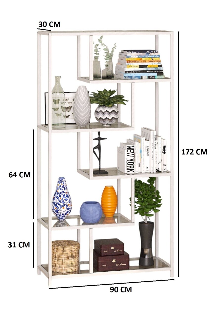 Corp biblioteca, Modara, By-30, 90x172x30 cm, Sticla, Alb / Transparent
