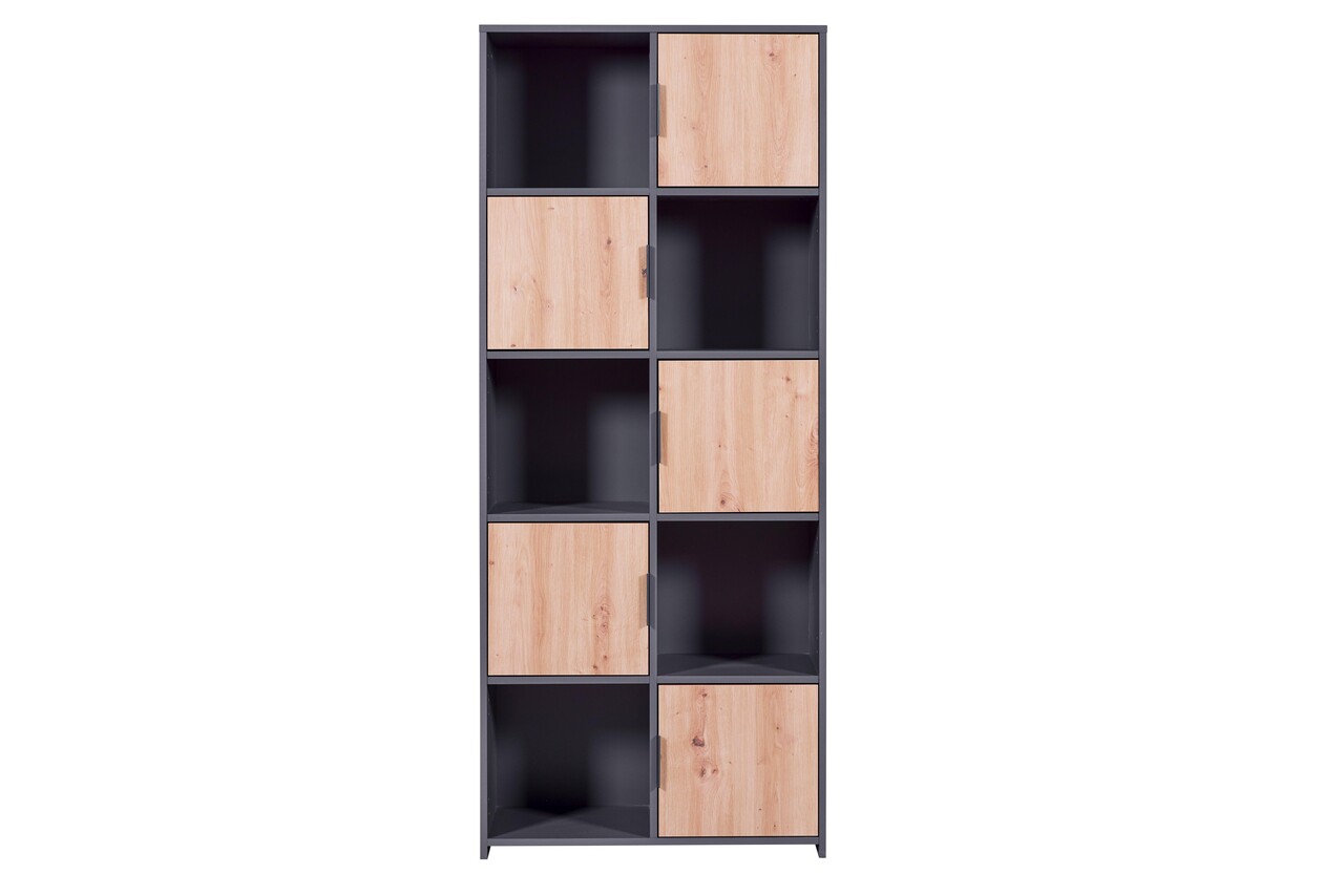 Pepeto este un frumos raft independent care completeaza perfect decorul camerei tale de zi. Combinatia moderna de culori, finisajul Artisan Oak si antracit, adauga o nota moderna. Frumos decorat, Pepeto devine un adevarat punct de atractie in camera de zi! Raftul ofera 10 spatii de depozitare: 5 sunt deschise si 5 sunt inchise cu usi. Un bonus frumos: usile pot fi montate dupa dorinta!