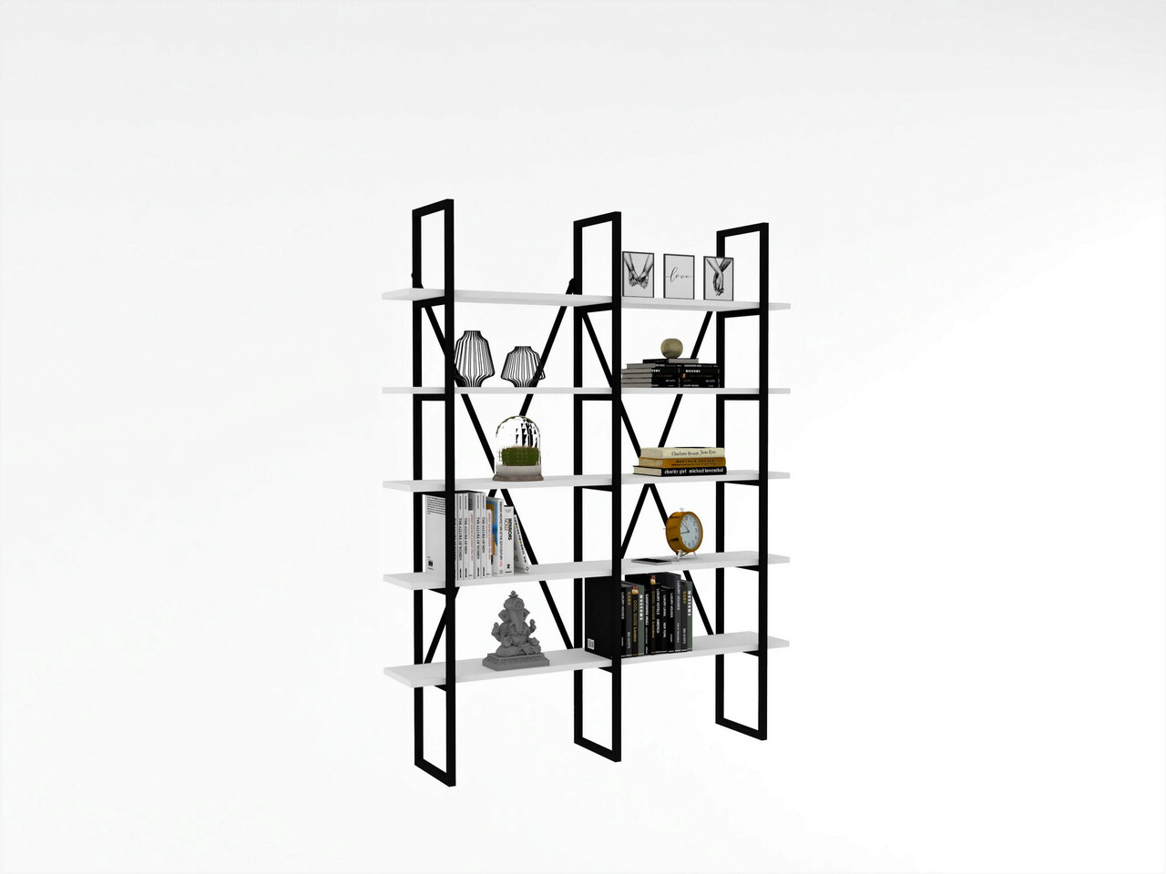 Corp biblioteca, Puqa Design, Kınalı, 126x160x26 cm, PAL, Alb/Negru