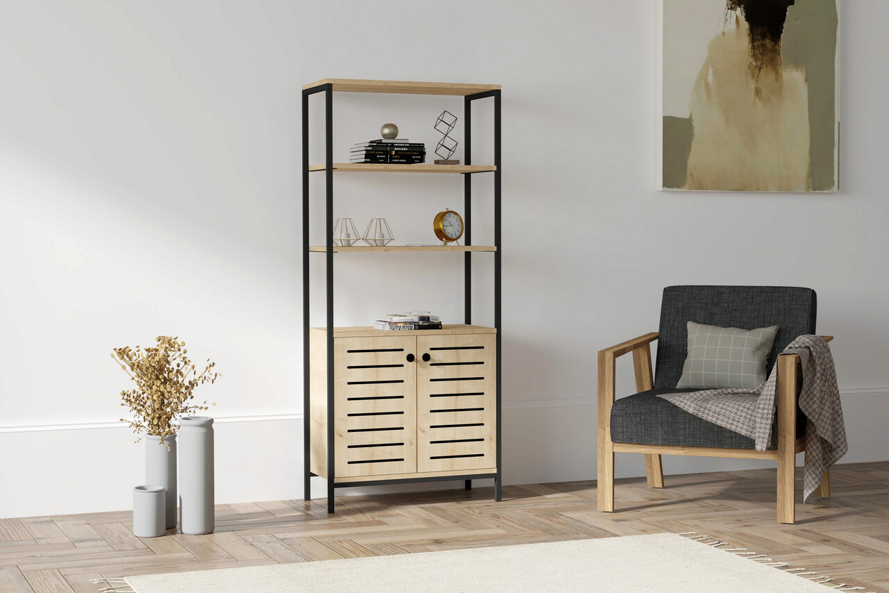 Corp biblioteca, Puqa Design, Metela, 70x162 cm, PAL, Safir / Negru