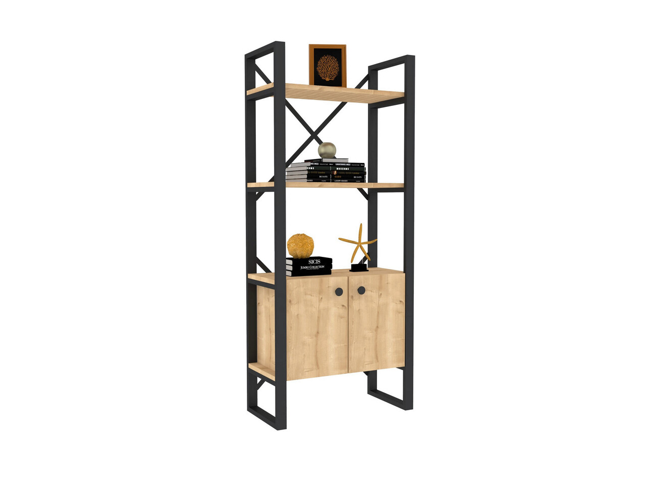 Corp biblioteca, Puqa Design, Milano, 64x160x32 cm, PAL, Safir / Negru