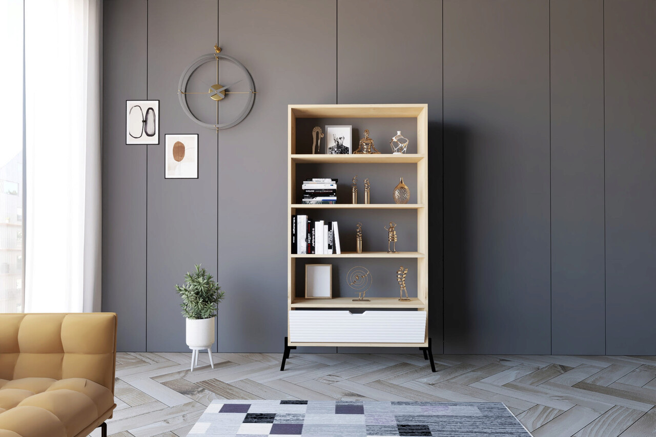 Corp biblioteca, Puqa Design, Numana, PAL, Stejar Safir / Alb