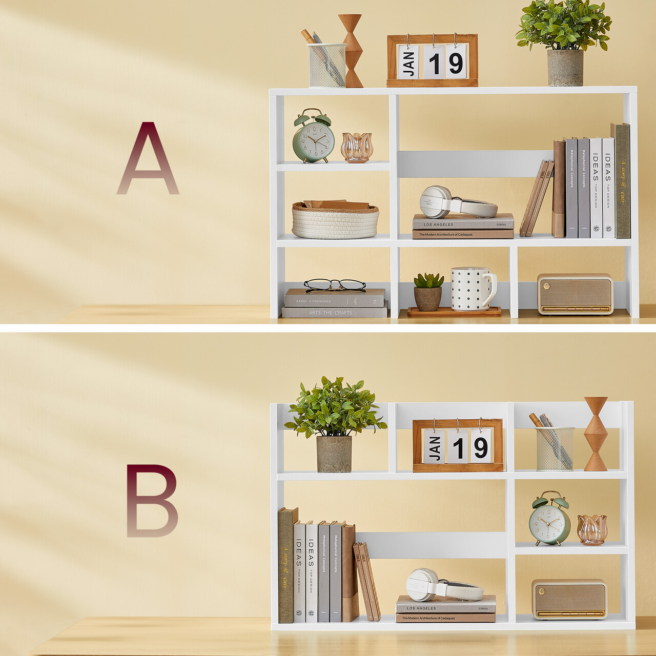 Spatiu generos de depozitare: Cu dimensiunile 80 x 20 x 50 cm, acest organizator pentru birou are rafturi si panouri de sustinere care ofera spatiu mare de depozitare. Unitățile compartimentate sunt perfecte pentru jucarii, carti sau plante.