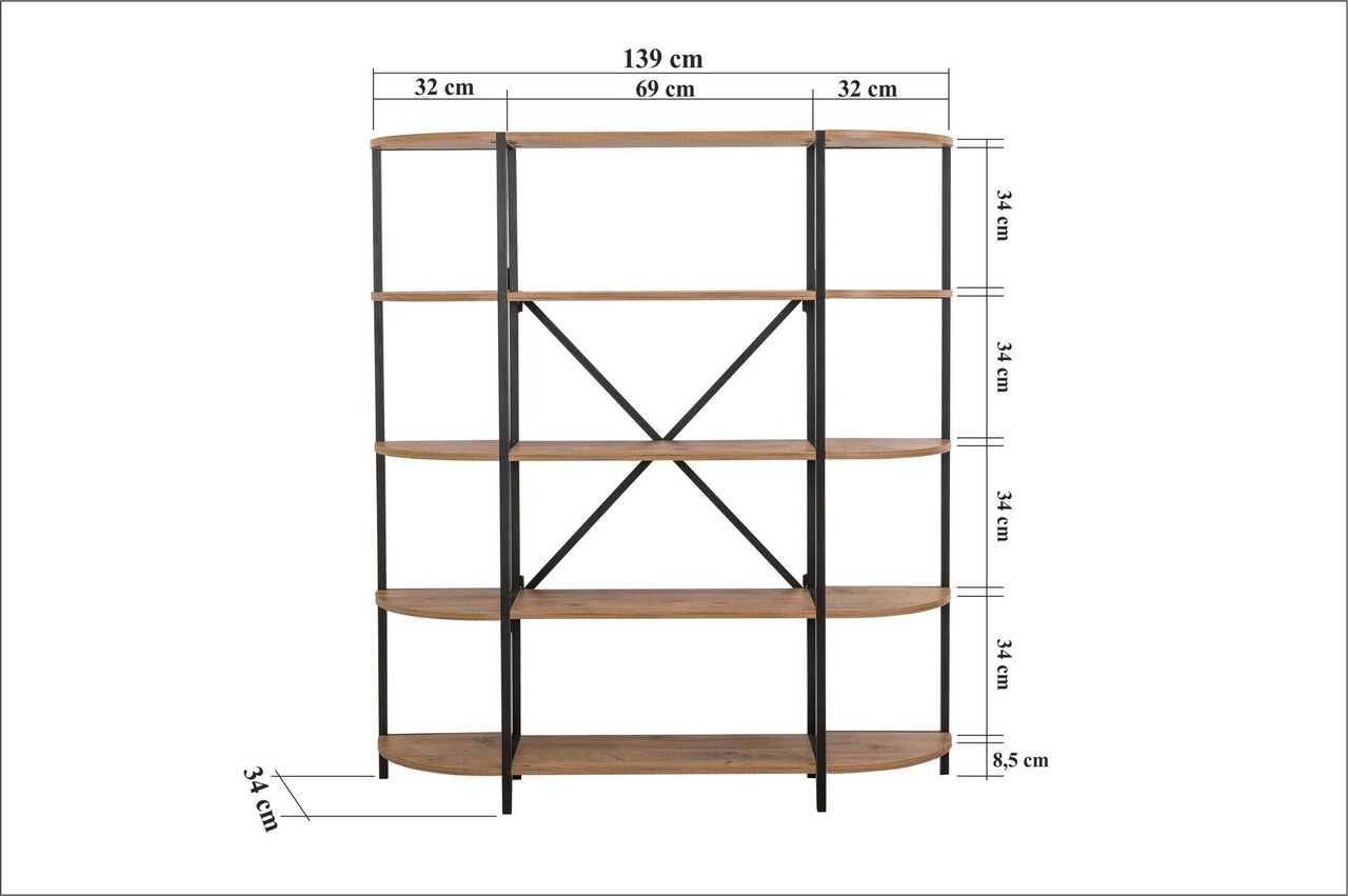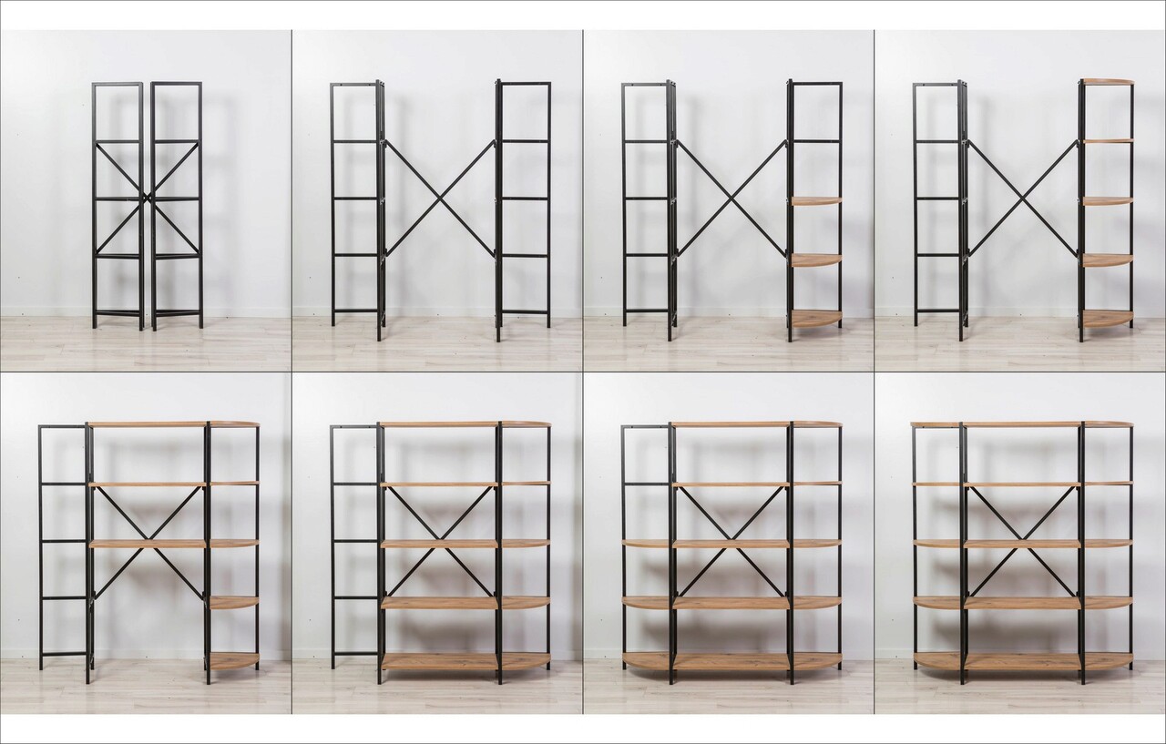 Corp biblioteca, Sapphire, Signa Rafix, 139x155x34 cm, PAL, Pin Atlantic / Negru