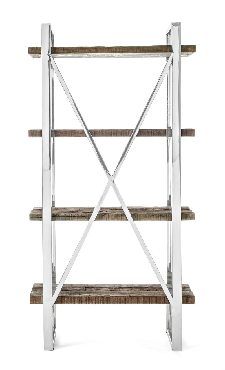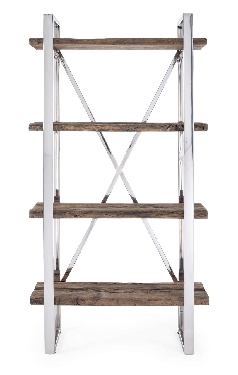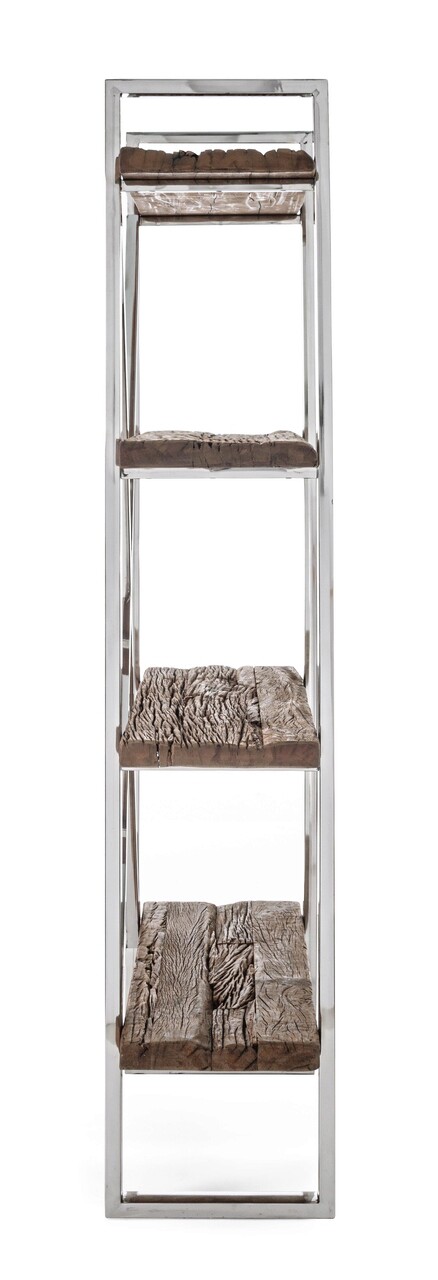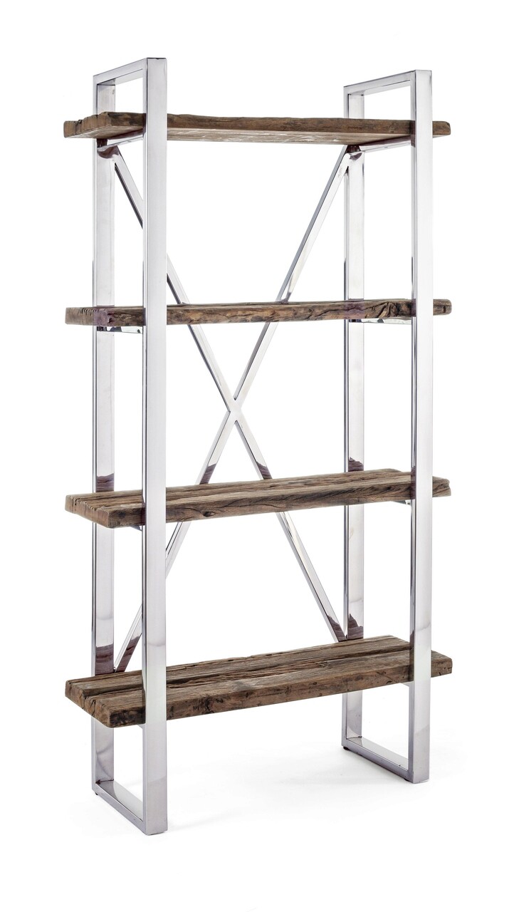 Corp biblioteca Stanton, Bizzotto, 90x35x180 cm, lemn reciclat/sticla temperata/inox