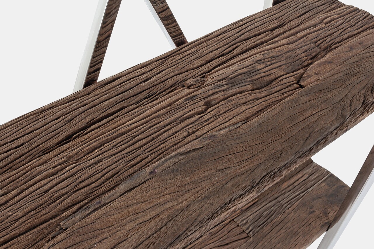 Rafturi din lemn reciclat.