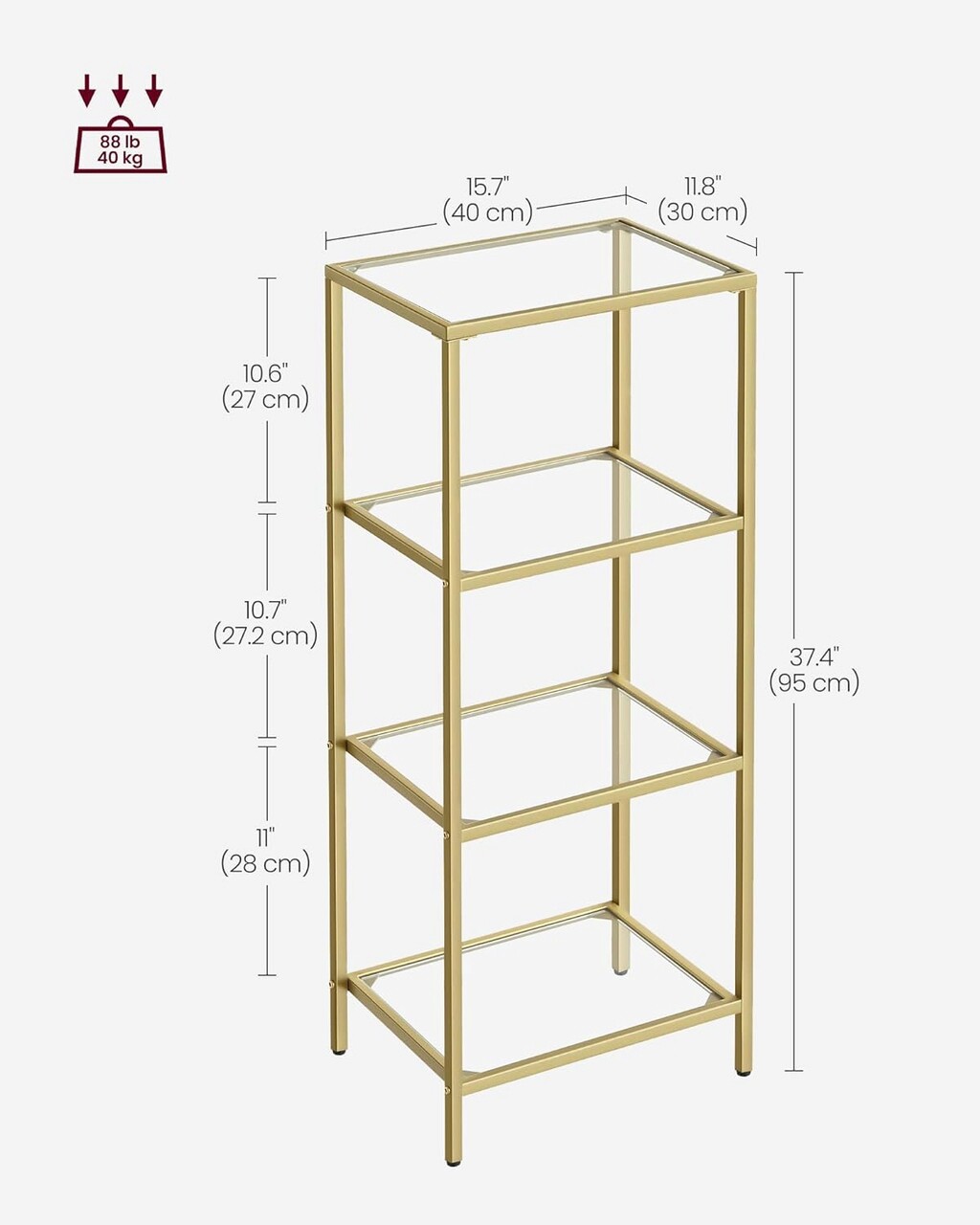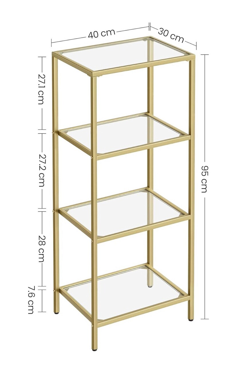 Corp biblioteca, Vasagle, 40x30x95 cm, max 40 kg, otel/sticla temperata, auriu