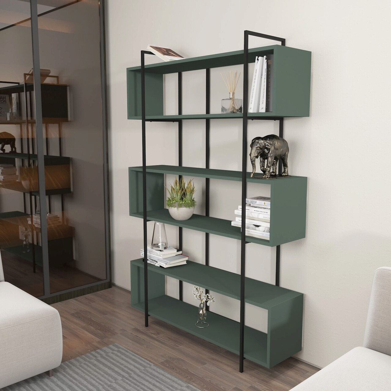 Corp biblioteca, Zena Home, Bruti, 120x180x29 cm, PAL, Verde/Negru