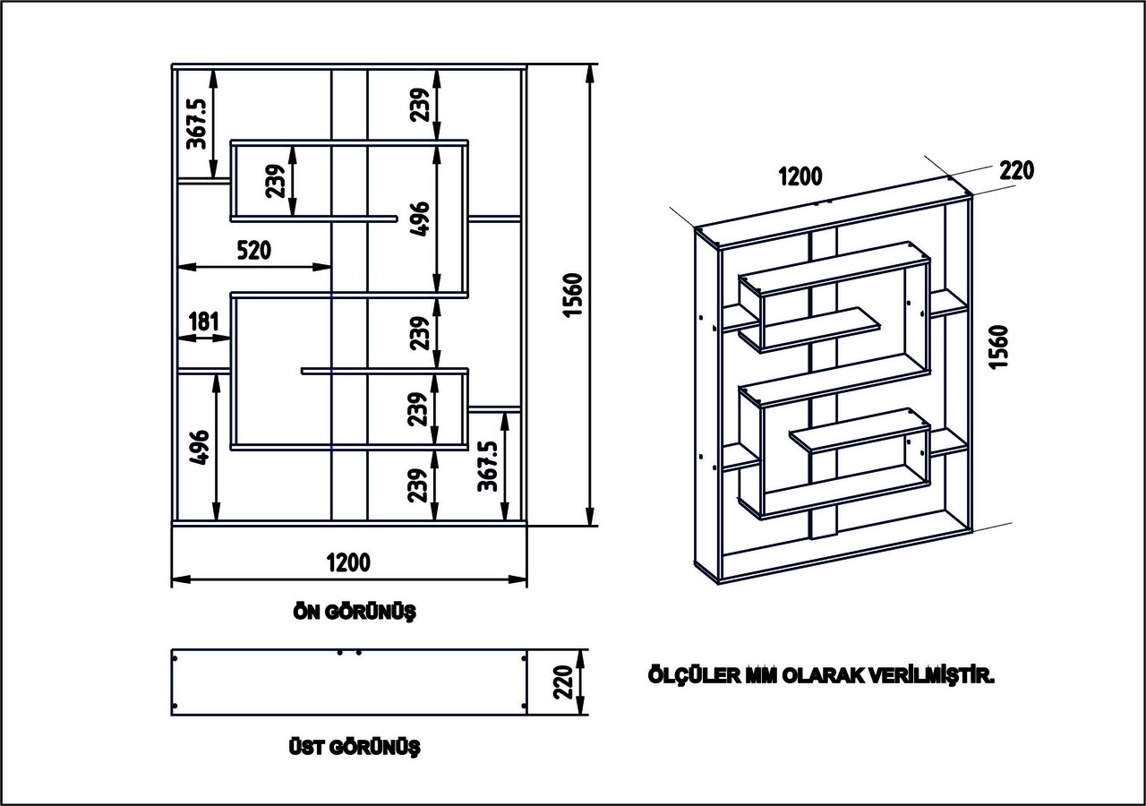 Dimensiunea raftului de carti: Latime: 120 cm  Inaltime: 156 cm  Adancime: 22 cm