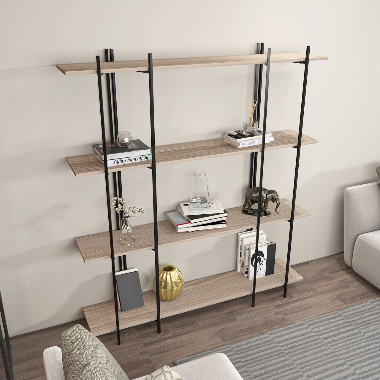 Corp biblioteca, Zena Home, Moss, 160x180x29 cm, PAL, Stejar / Negru