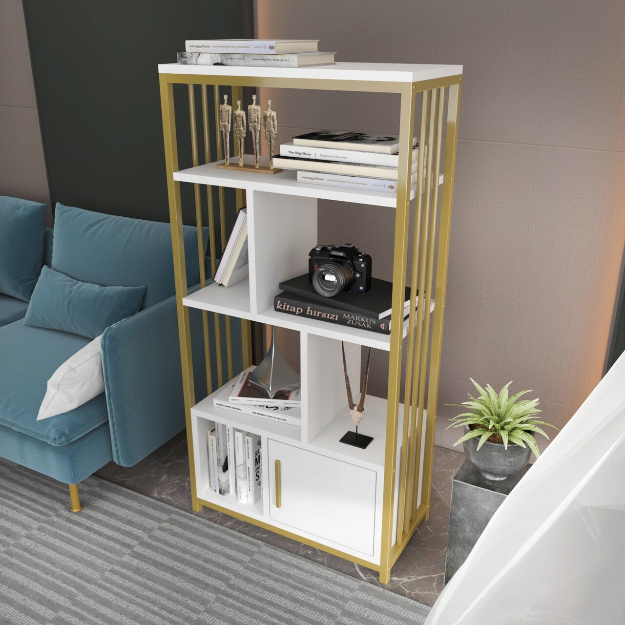Corp biblioteca, Zena Home, Valero, 60x120x29 cm, PAL, Alb/Auriu