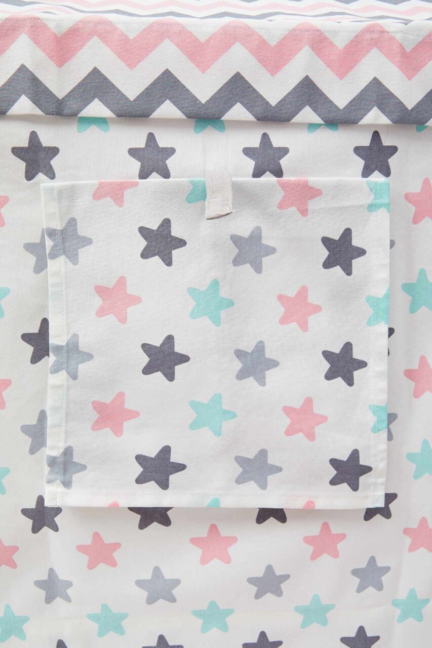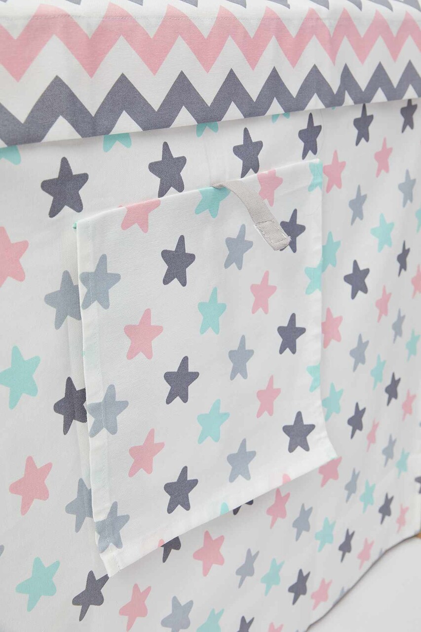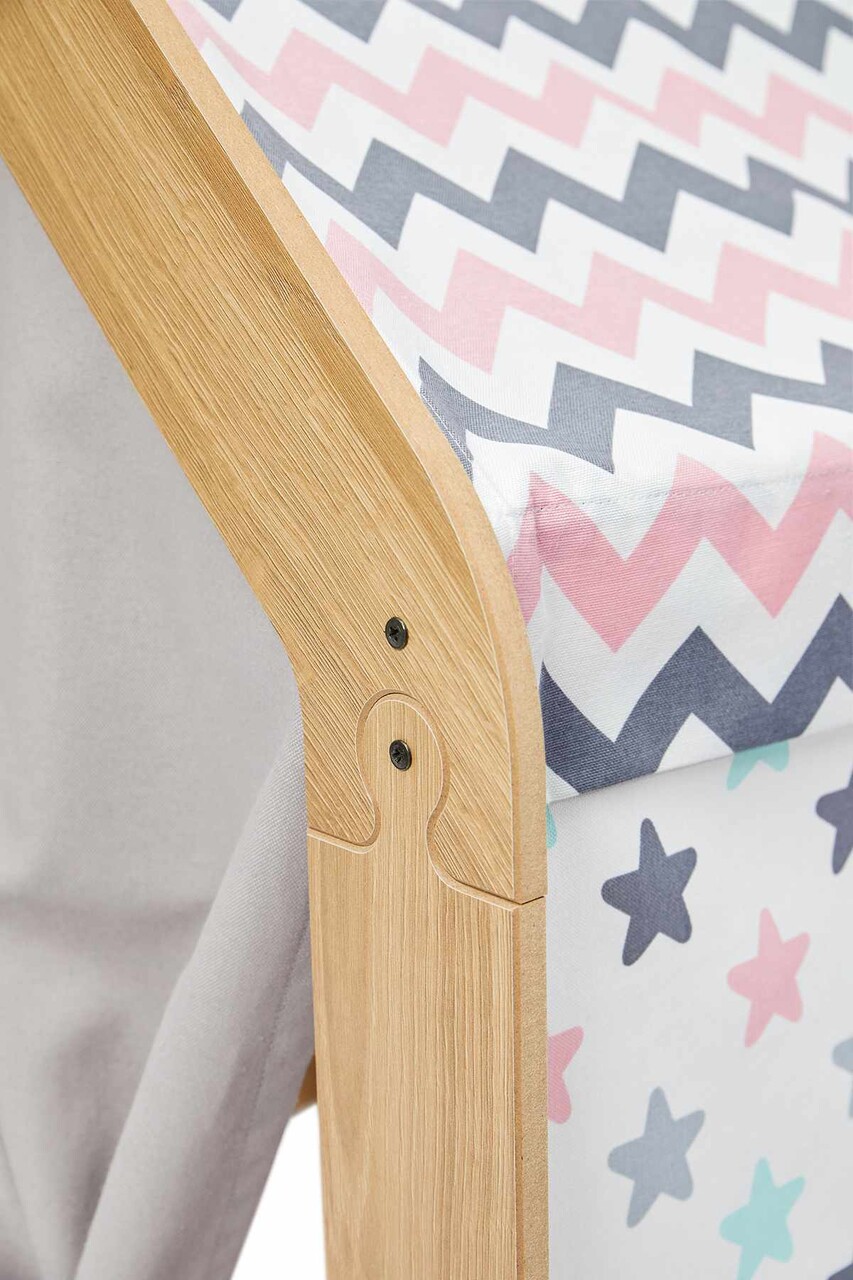 Cort de joaca pentru copii, Hanah Home, Wooden Tent, 95x114x90 cm, Natural / Alb / Roz