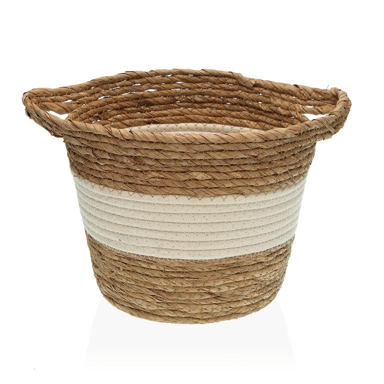 Cos de depozitare cu manere, Versa, 26 x 26 x 21 cm, paie impletite/bumbac, alb
