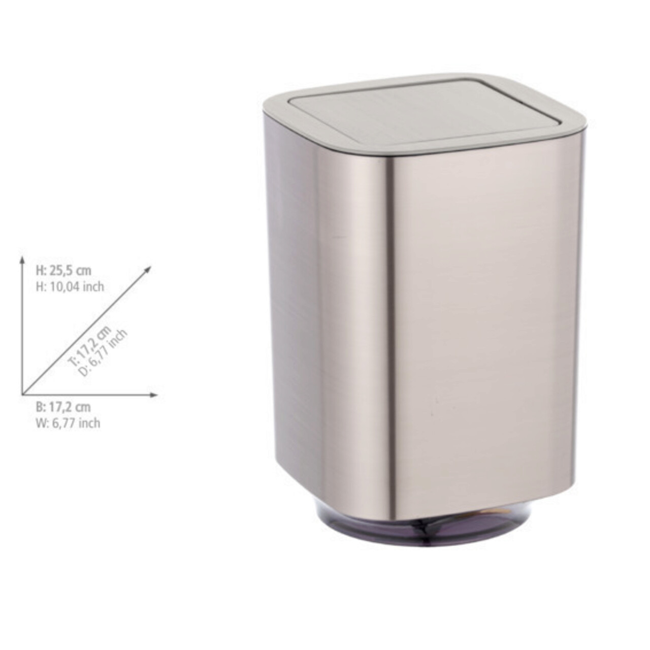 Cos de gunoi Auron, Wenko, 17.2x17.2x25.5 cm, plastic, argintiu mat