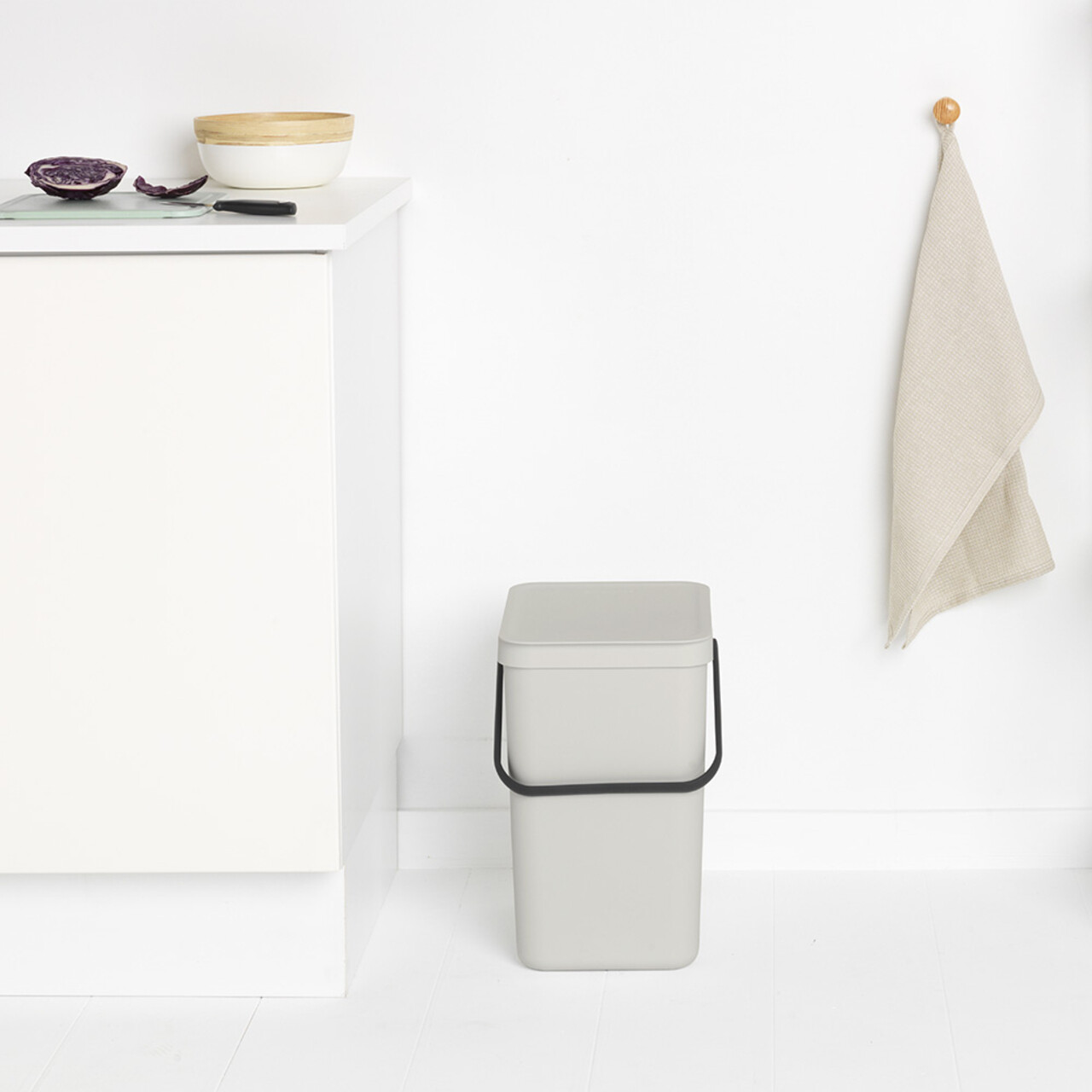Cos de gunoi, Brabantia, Sort&Go, 25 L, 34.5x26.8x40.1 cm, polipropilena, gri deschis