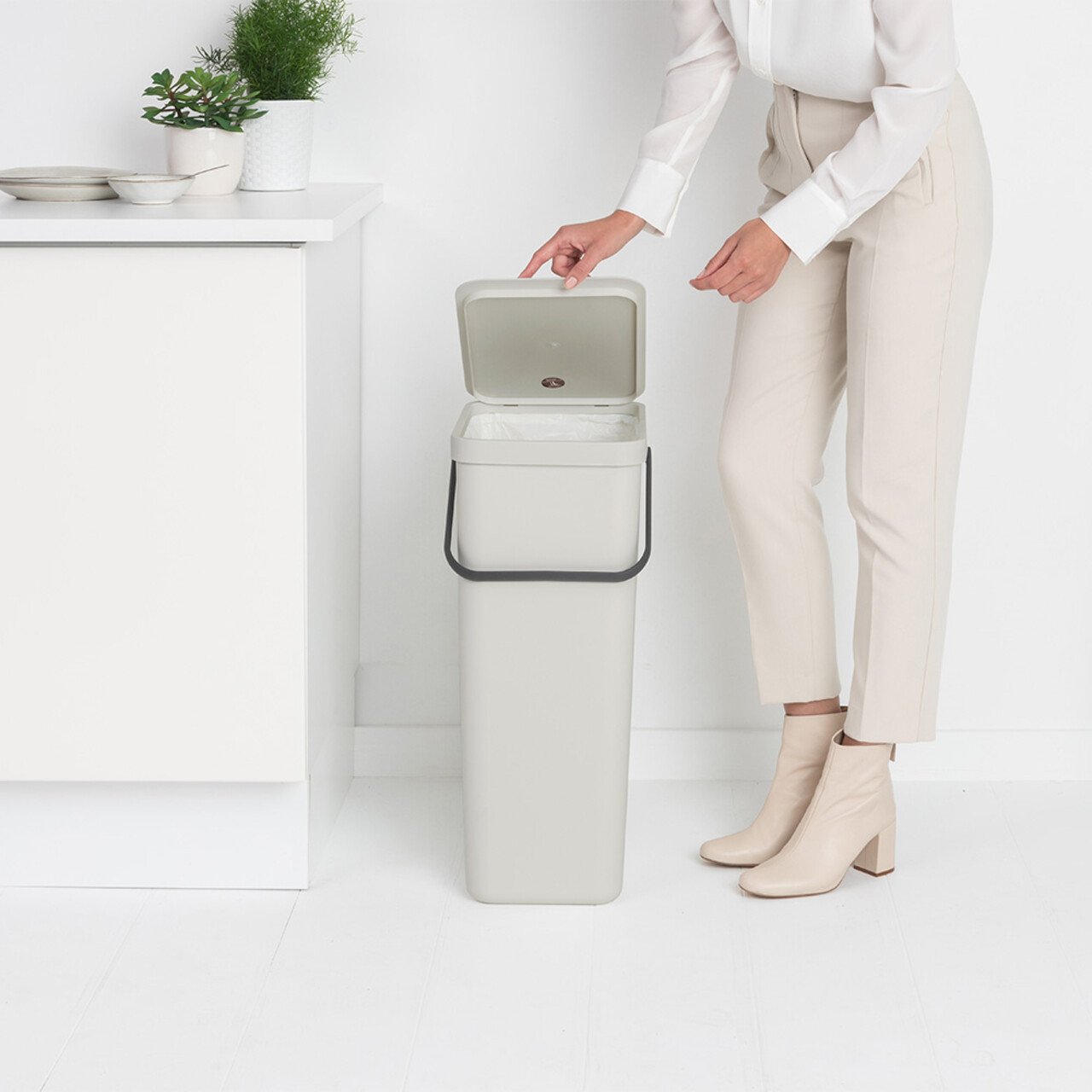Cos de gunoi, Brabantia, Sort&Go, 40 L, 34.5x26.8x62 cm, polipropilena, gri deschis