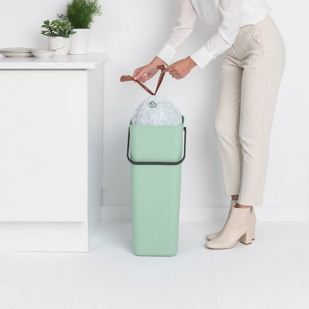 Cos de gunoi, Brabantia, Sort&Go, 40 L, 34.5x26.8x62 cm, polipropilena, verde jad