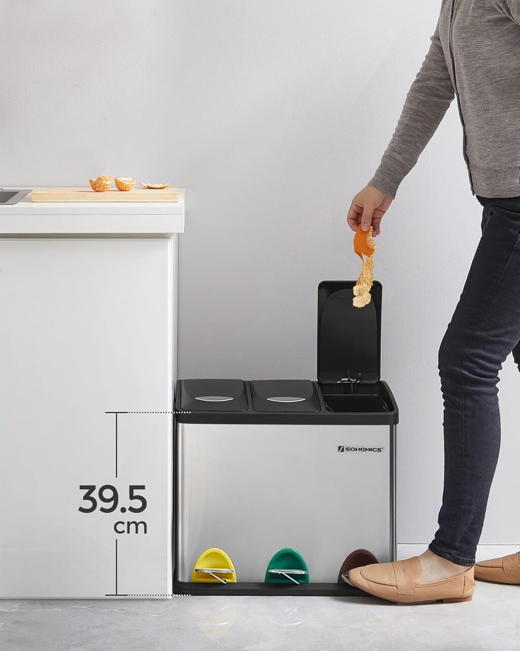 Acest cos de reciclare are un corp robust din otel, este proiectat sa reziste ani de zile fara sa va dezamageasca, iar capacele etanse fac o treaba excelenta pentru a tine mirosurile sub control.
