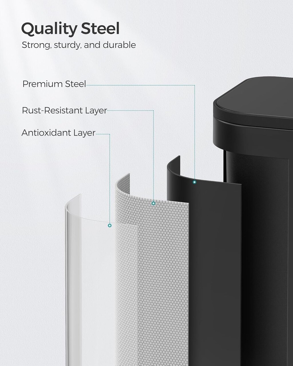 Cos de gunoi cu pedala 20 L, Songmics, inchidere soft close, 36.6x30x42.5 cm, inox, negru ink