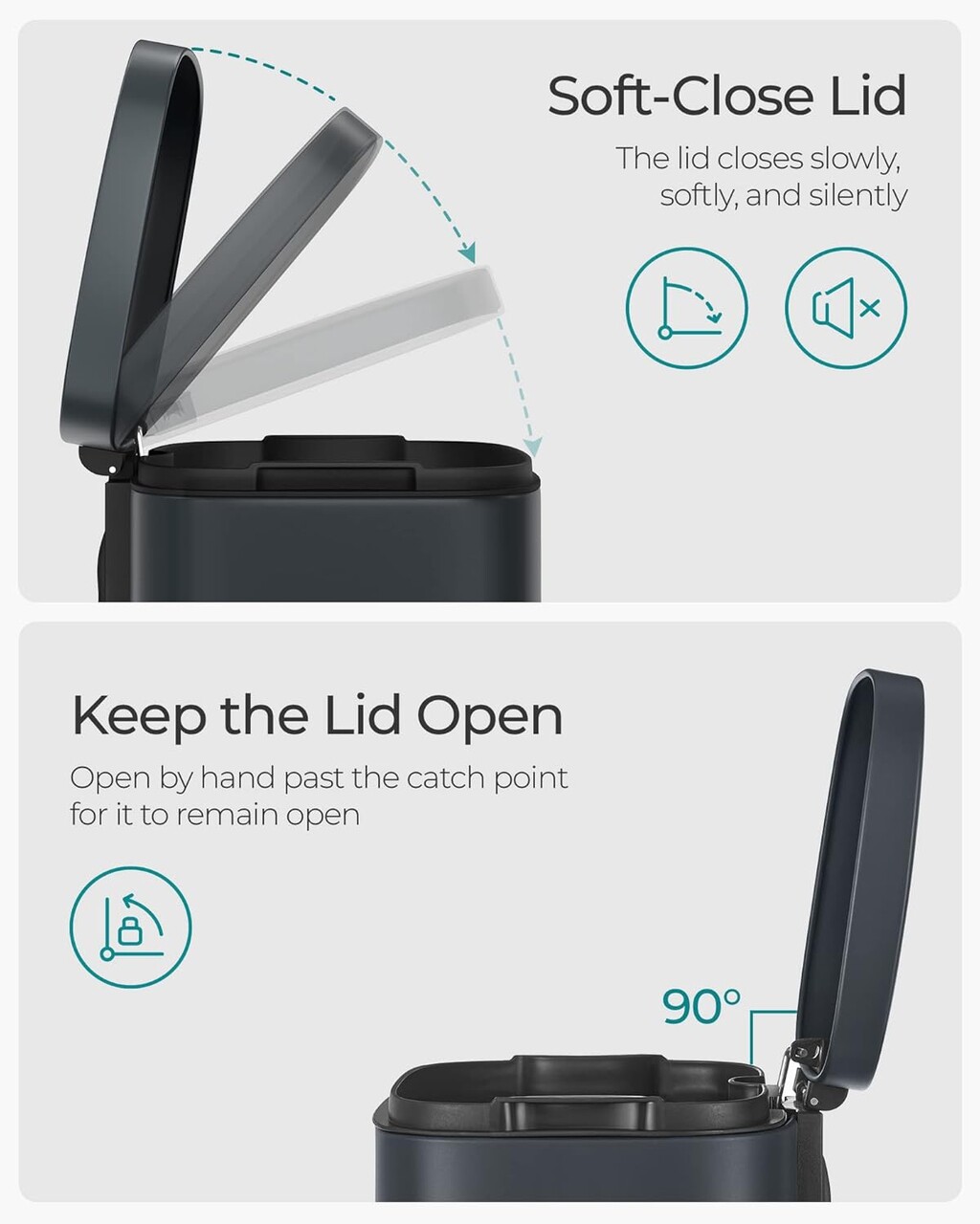 Capacul poate fi deschis prin apasarea pedalei pentru a arunca rapid deseurile sau poate fi deschis cu mana pentru pana la un punct de blocare.