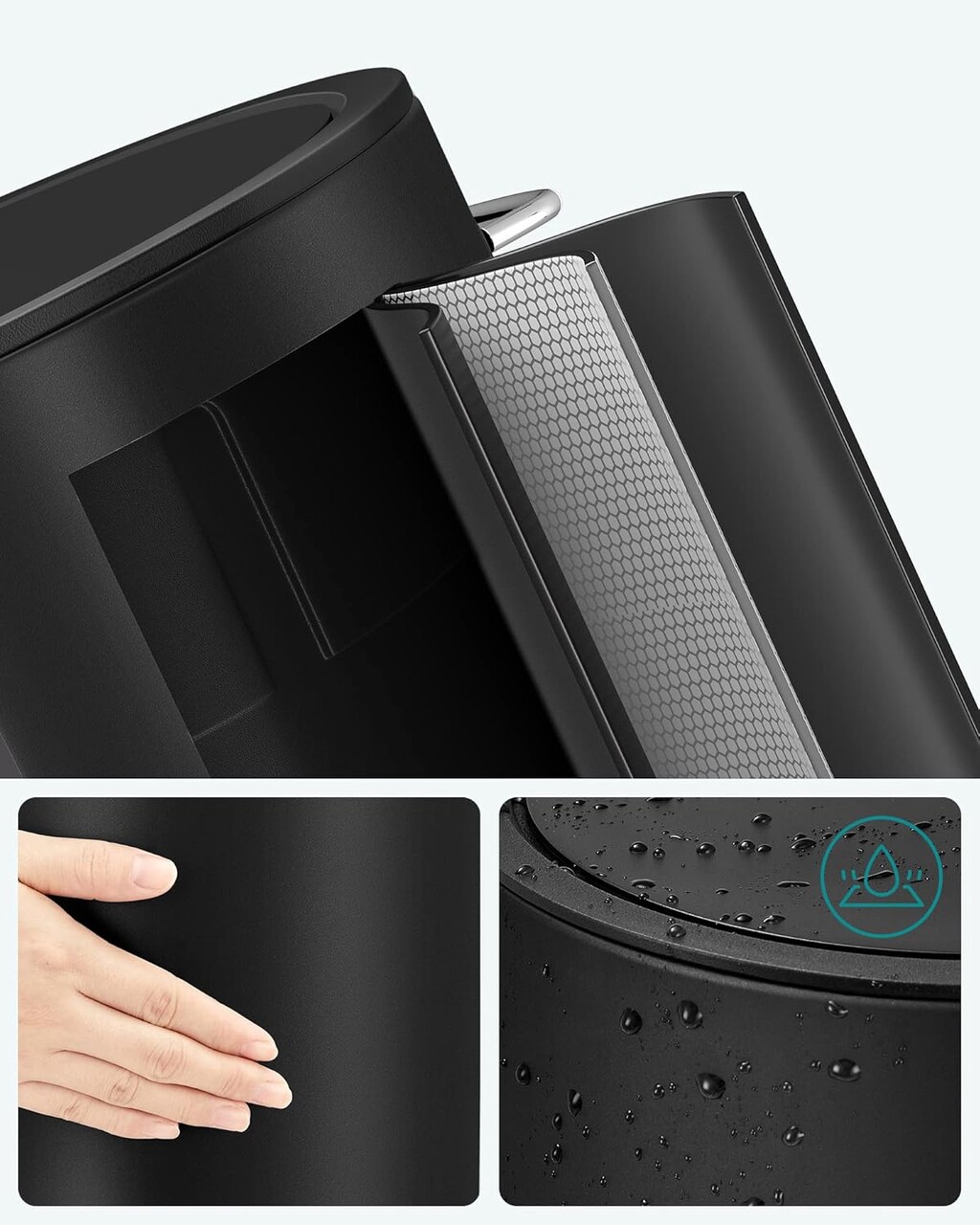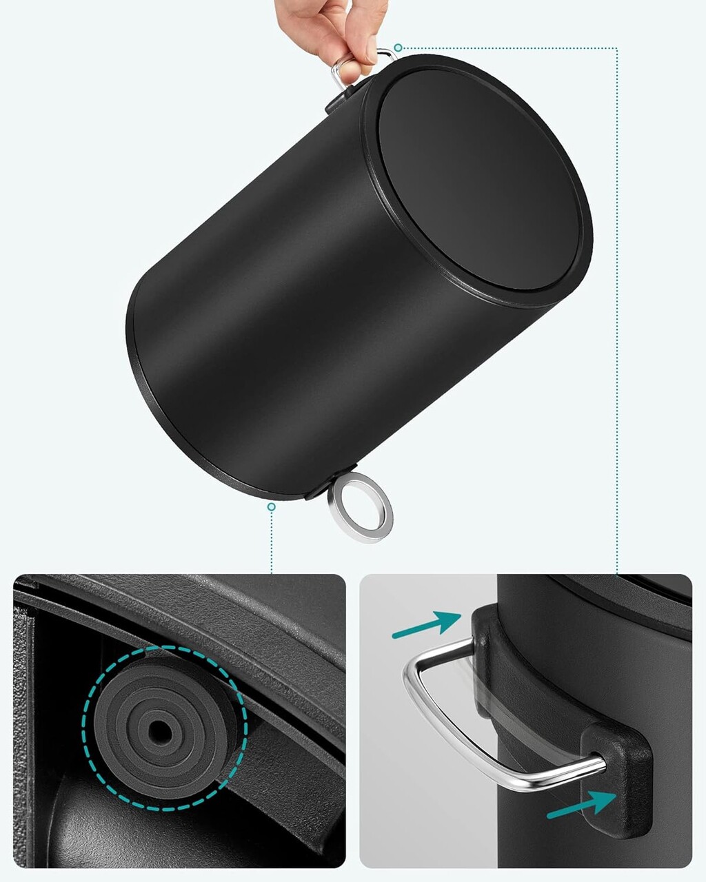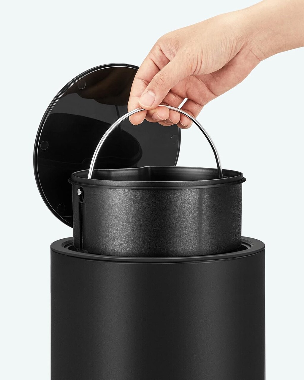 Cos de gunoi cu pedala 3L, Songmics, 23.8x18.8x25.7 cm, otel/plastic, negru