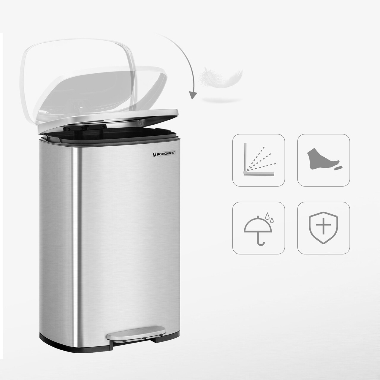 Cos de gunoi cu pedala 50 L, Songmics, inchidere soft close, capac cu balamale, igienic, etans, 43.2x37.1x63.2 cm, otel, argintiu