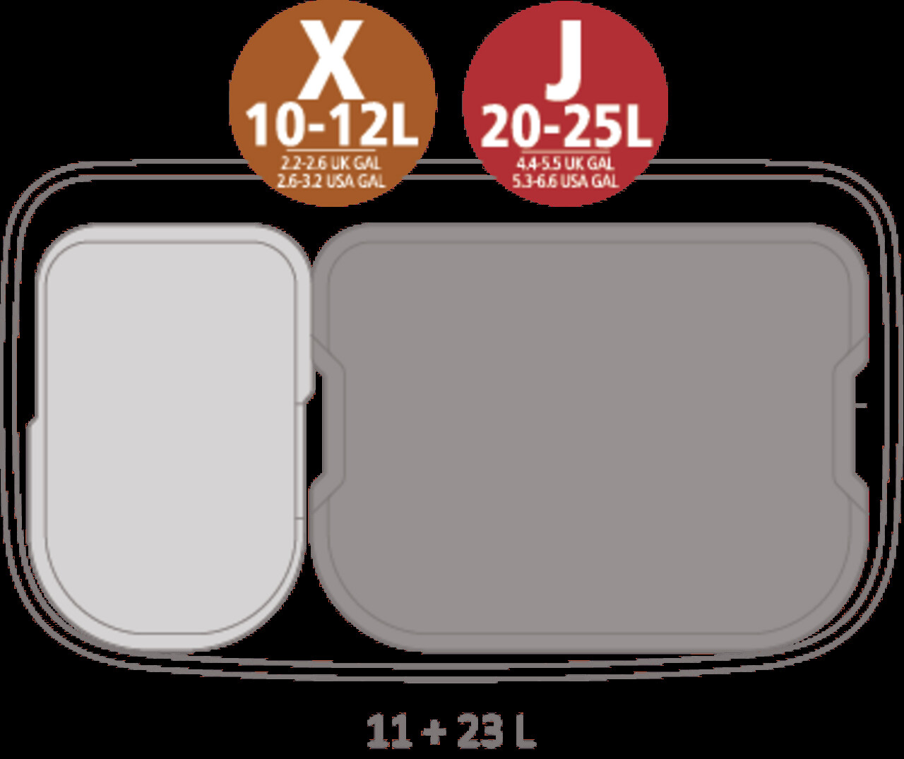 Interior din plastic rezistent - 2 galeti detasabile de 11L si 23L fiecare.