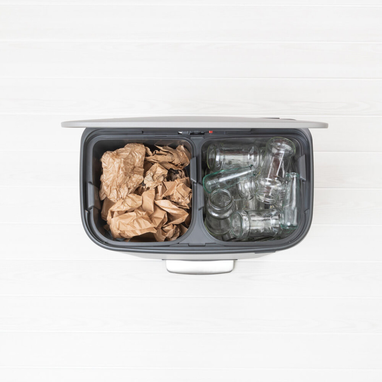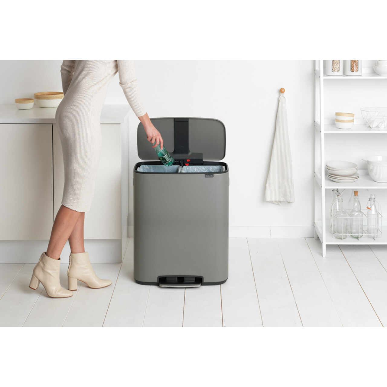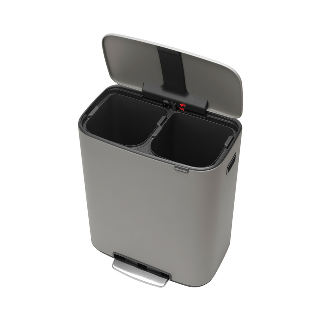 Cos de gunoi cu pedala, Brabantia, Bo Pedal, 2x30 L, 36.3x54.1x65.2 cm, otel, gri
