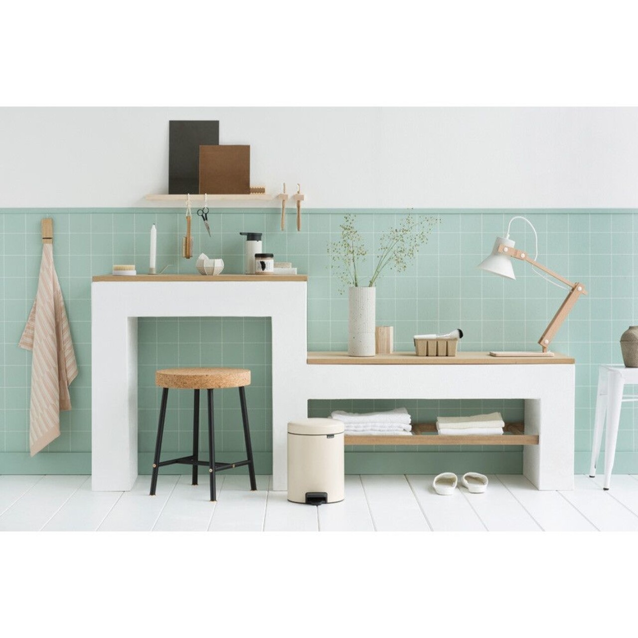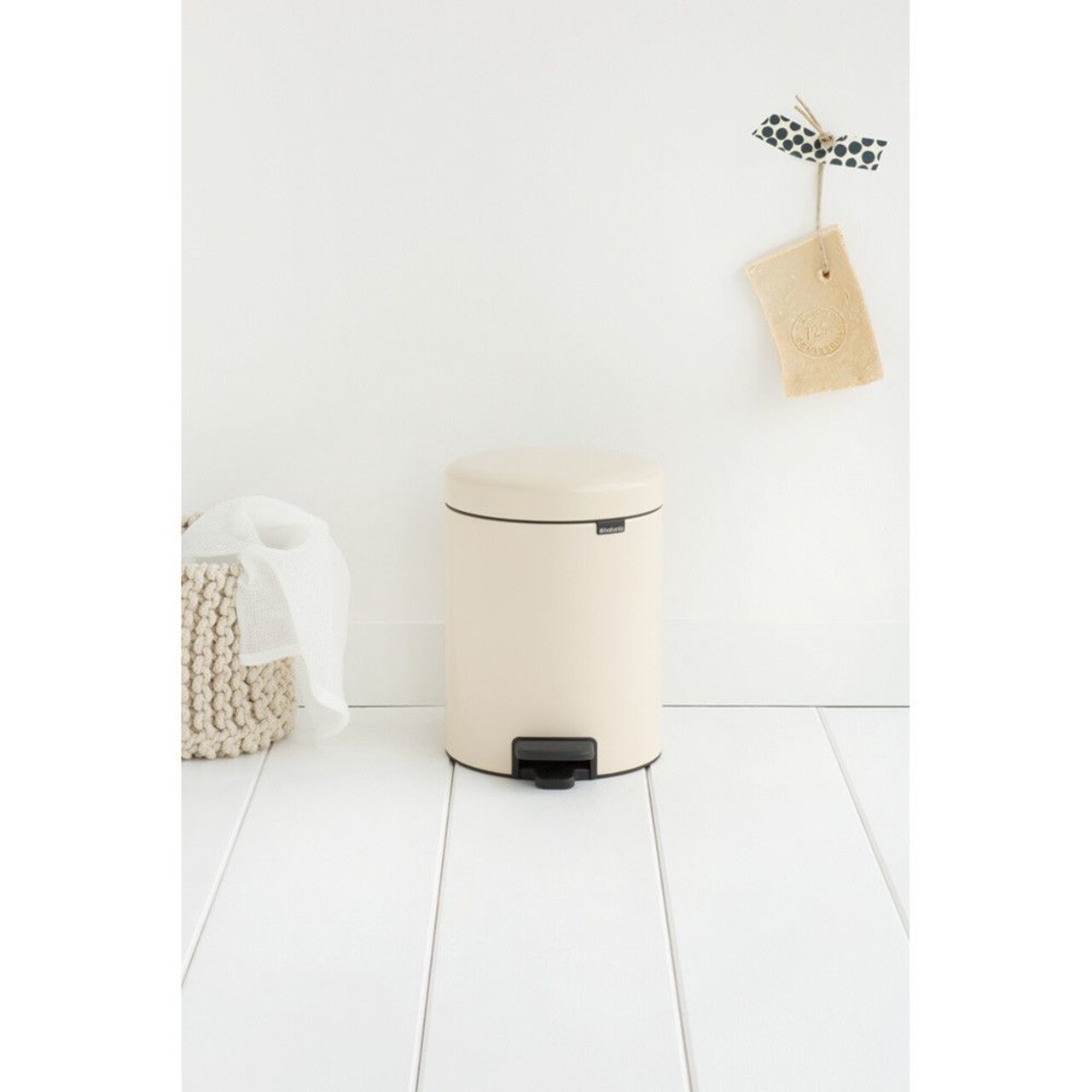 Cos de gunoi cu pedala, Brabantia, Icon Almond, 5 L, inox, crem