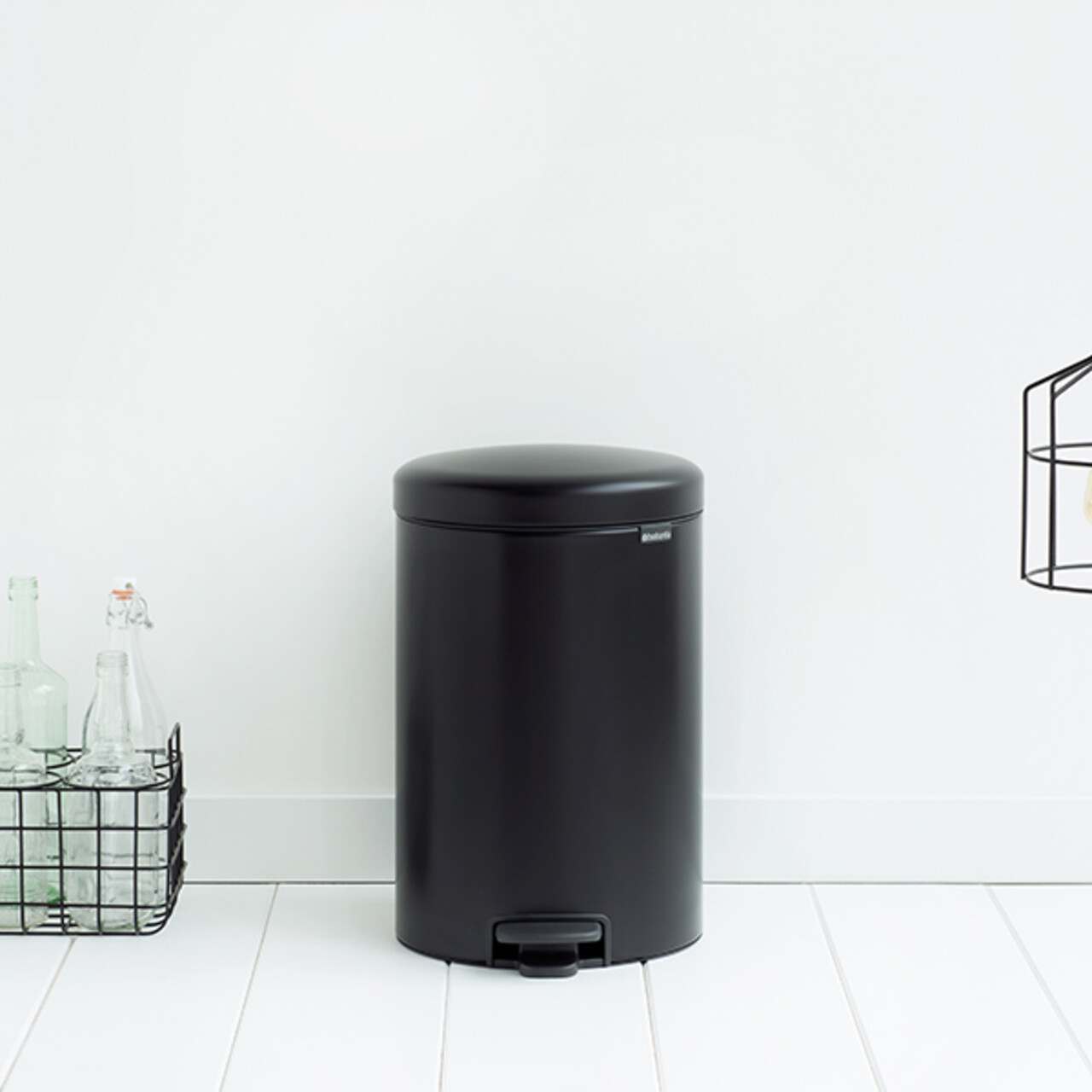 Cos de gunoi cu pedala, Brabantia, NewIcon, 20 L, 38x29x46.7 cm, otel, negru mat
