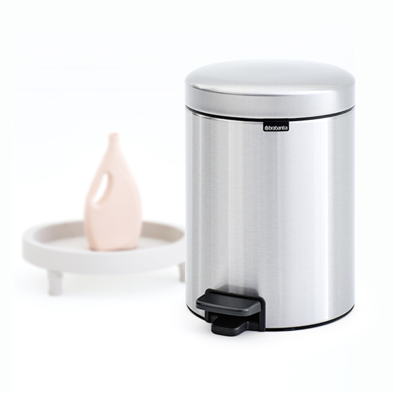 Cos de gunoi cu pedala, Brabantia, NewIcon Fingerprint Proof, 5 L, 27.2x20.5x29.1 cm, otel, argintiu