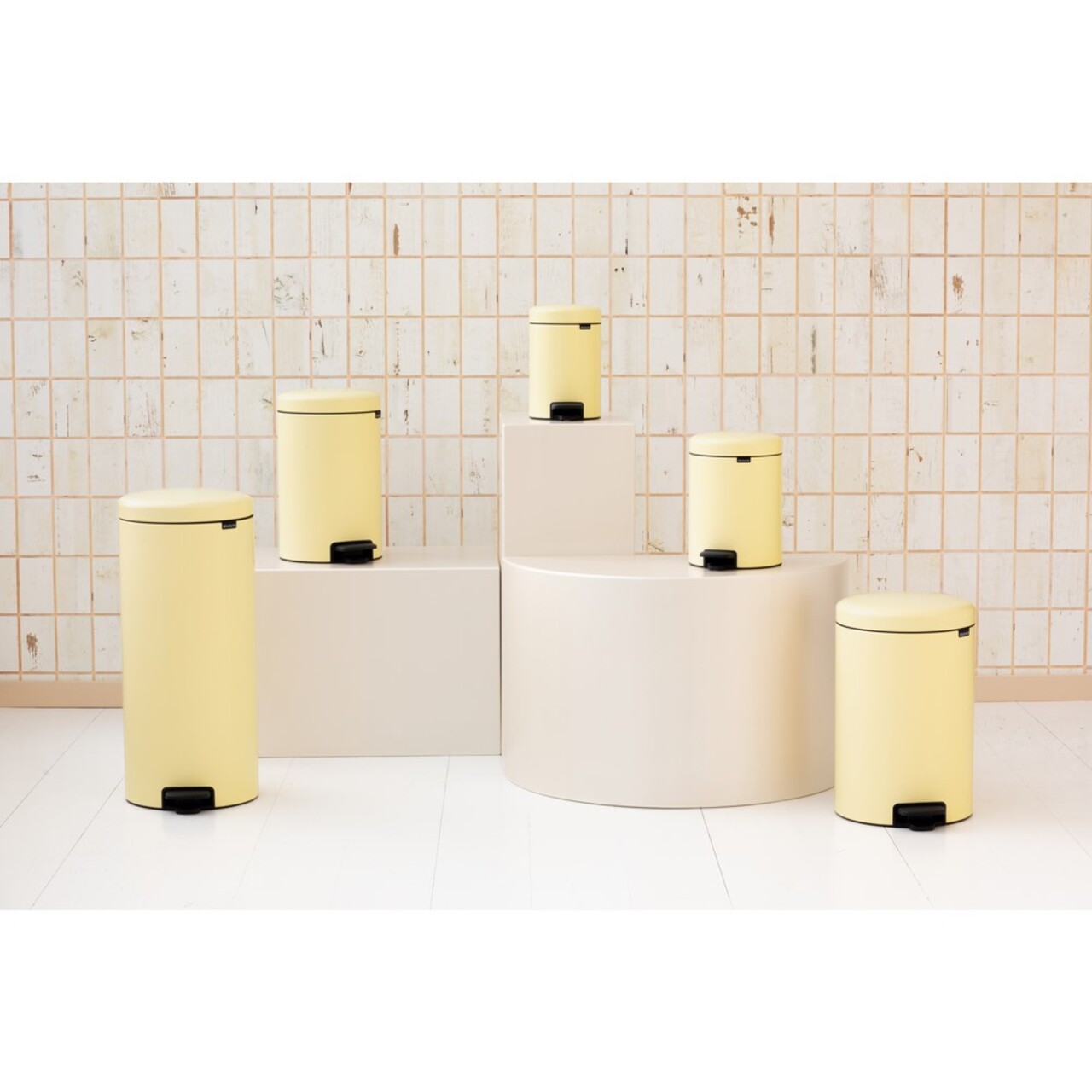 Cos de gunoi cu pedala, Brabantia, NewIcon Mellow Yellow, 30 L, 38x29.3x67.9 cm, otel, galben pastel