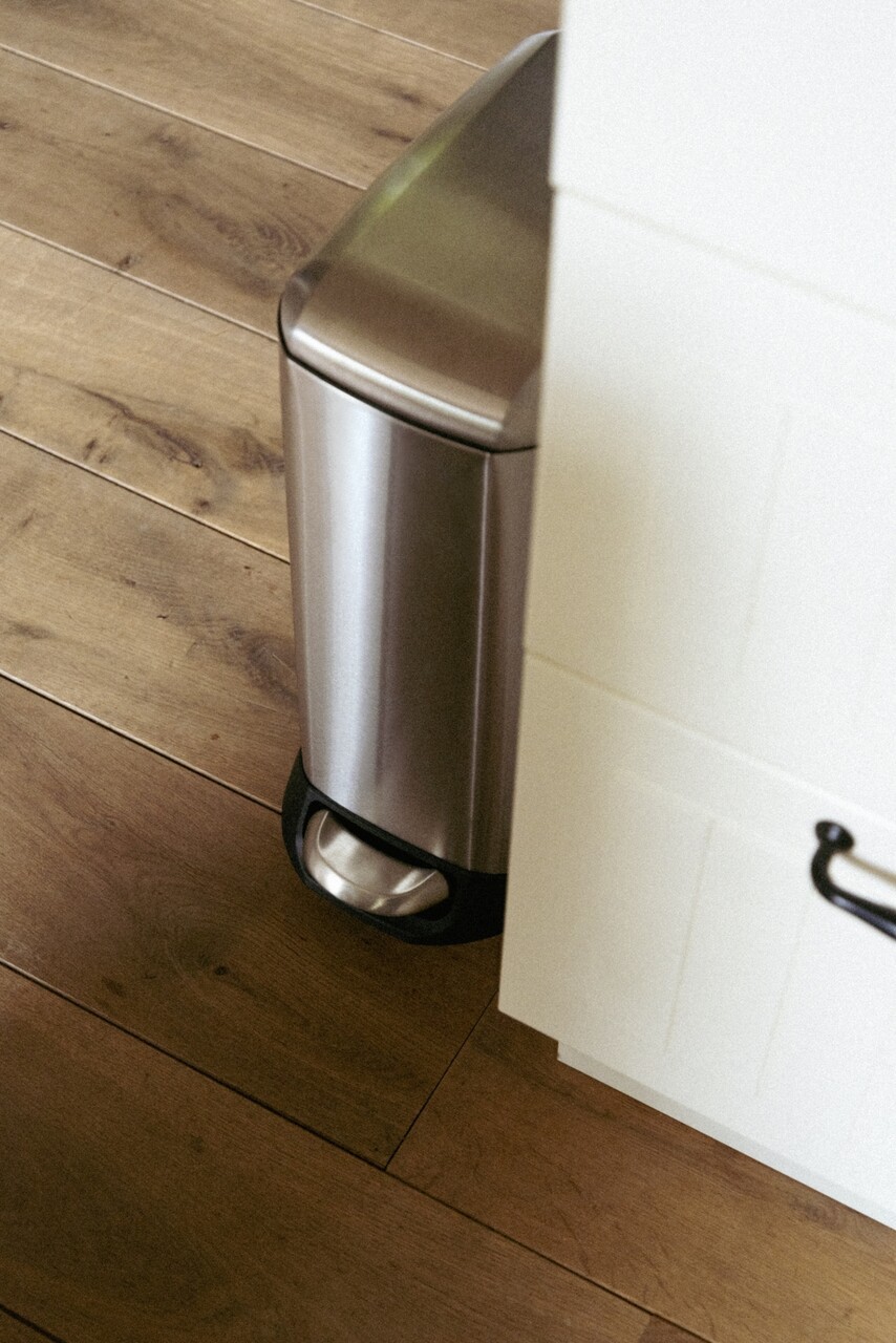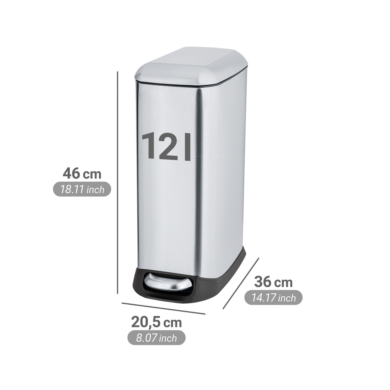 Cos de gunoi cu pedala Design, Wenko, 20.5x36x46 cm, inox/polipropilena, argintiu/negru