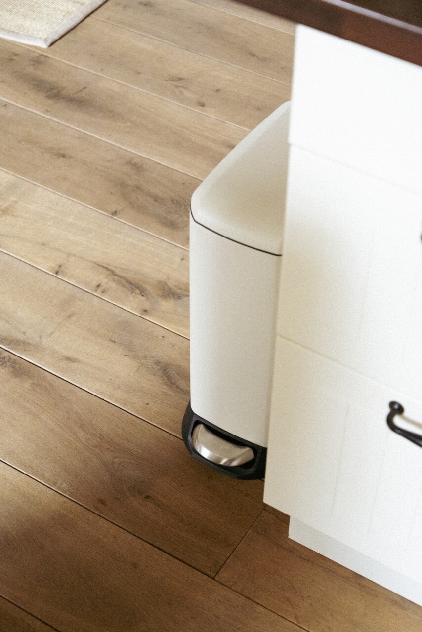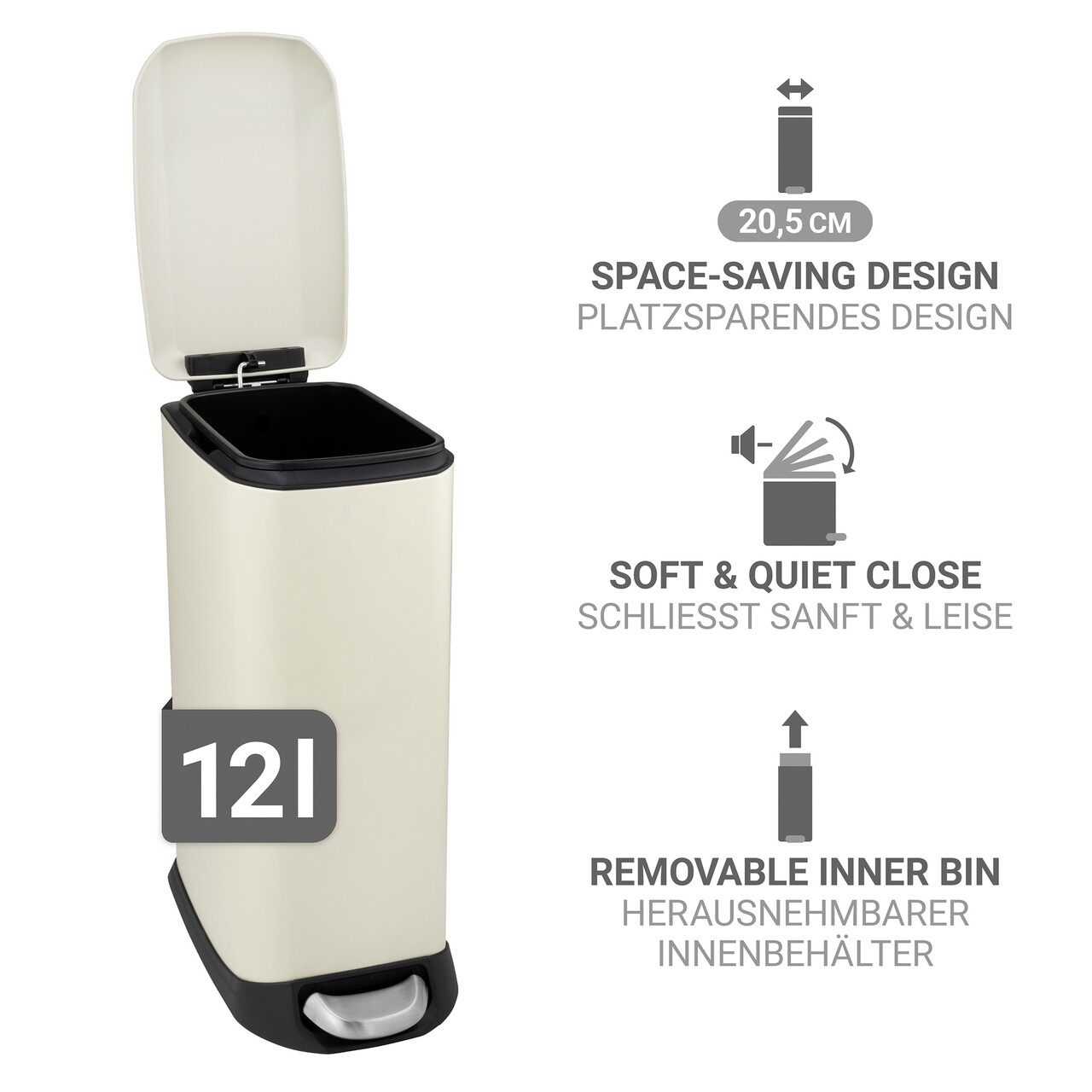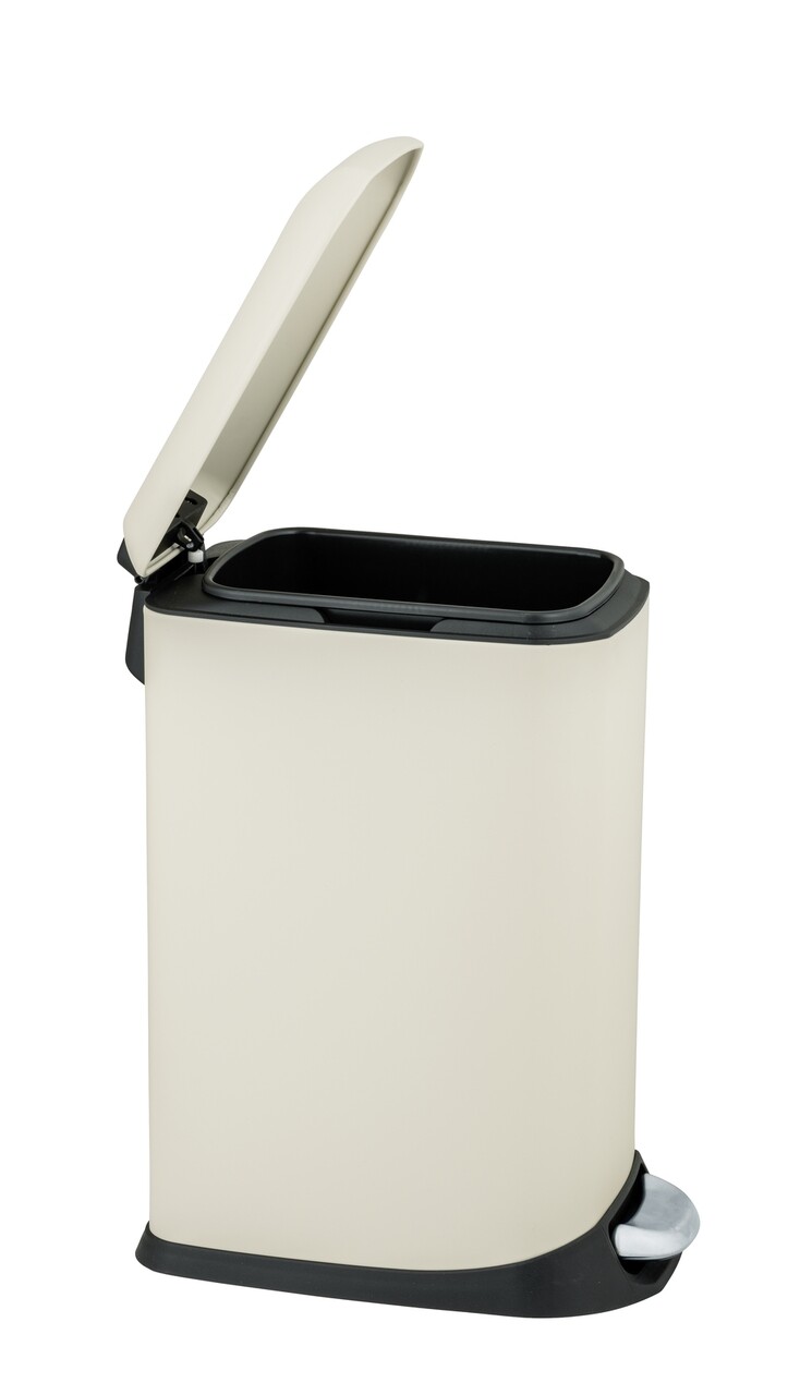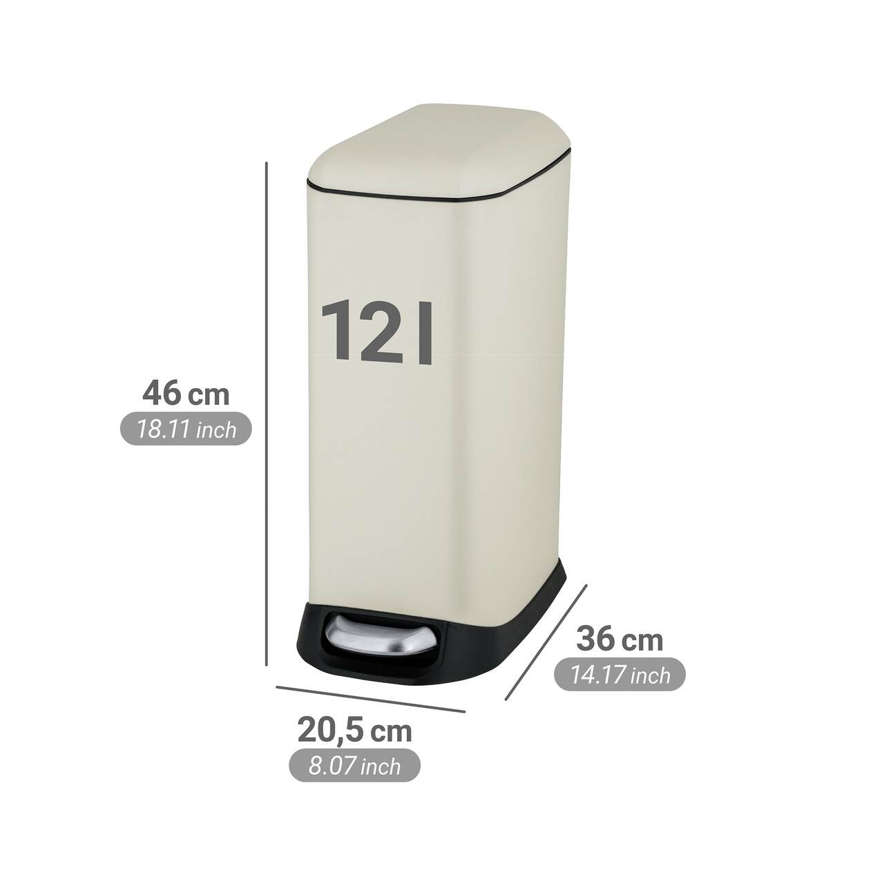 Cos de gunoi cu pedala Design, Wenko, 20.5x36x46 cm, otel/polipropilena, crem/negru