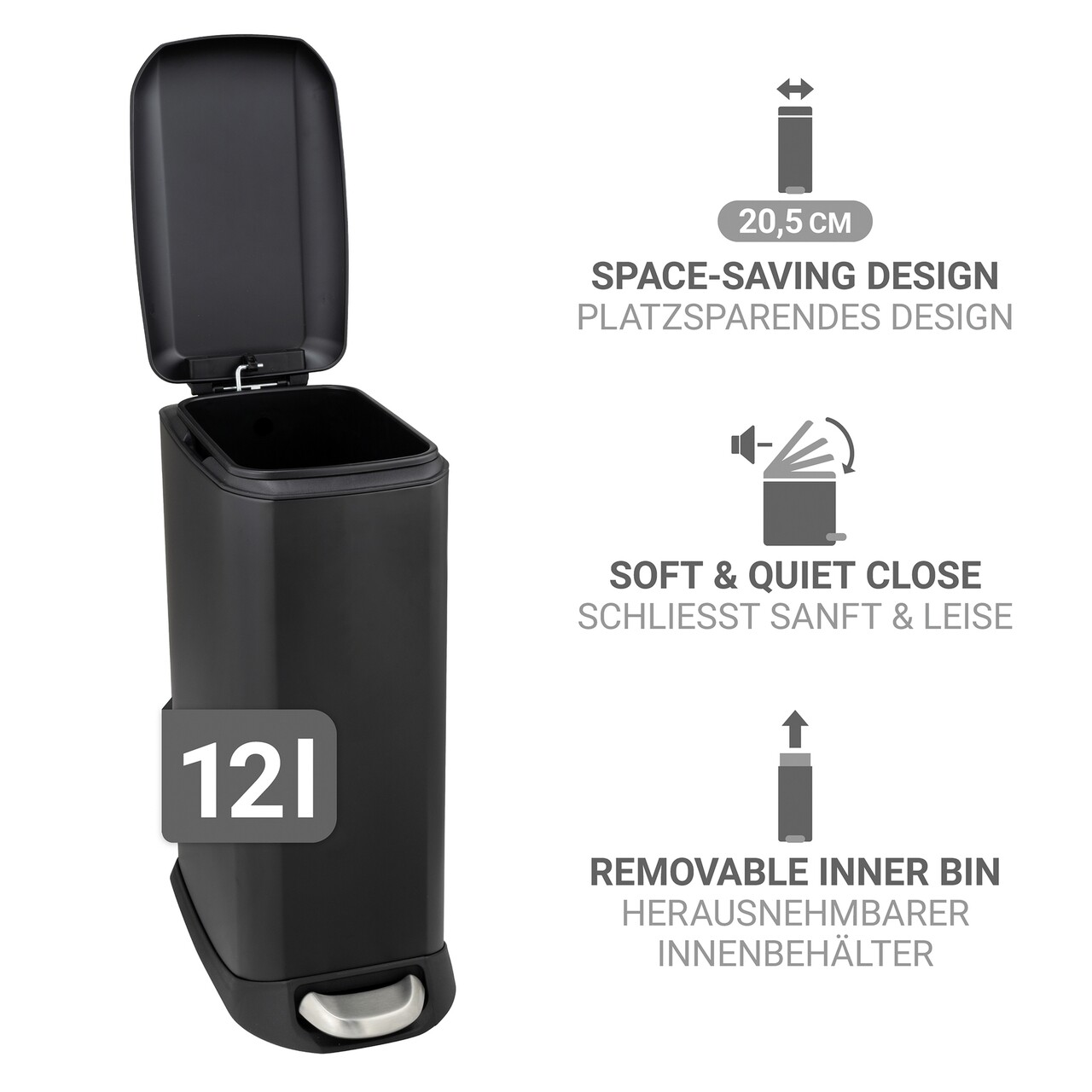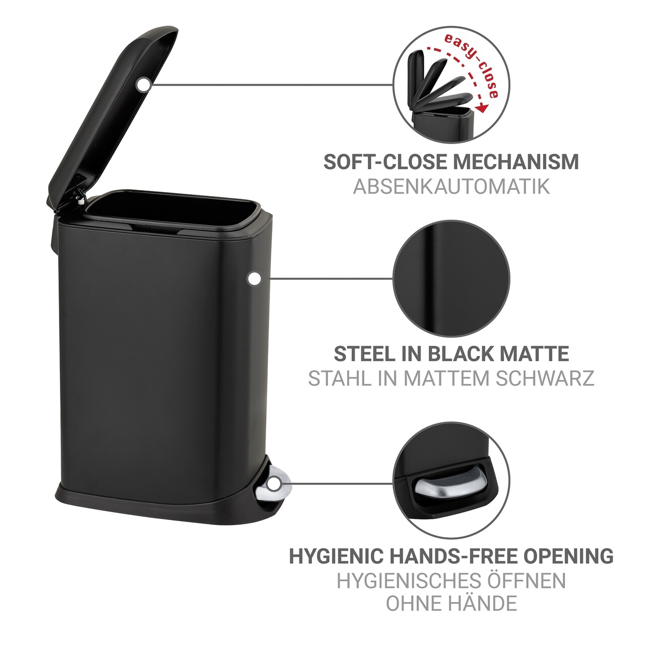 Cos de gunoi cu pedala Design, Wenko, 20.5x36x46 cm, otel/polipropilena, negru