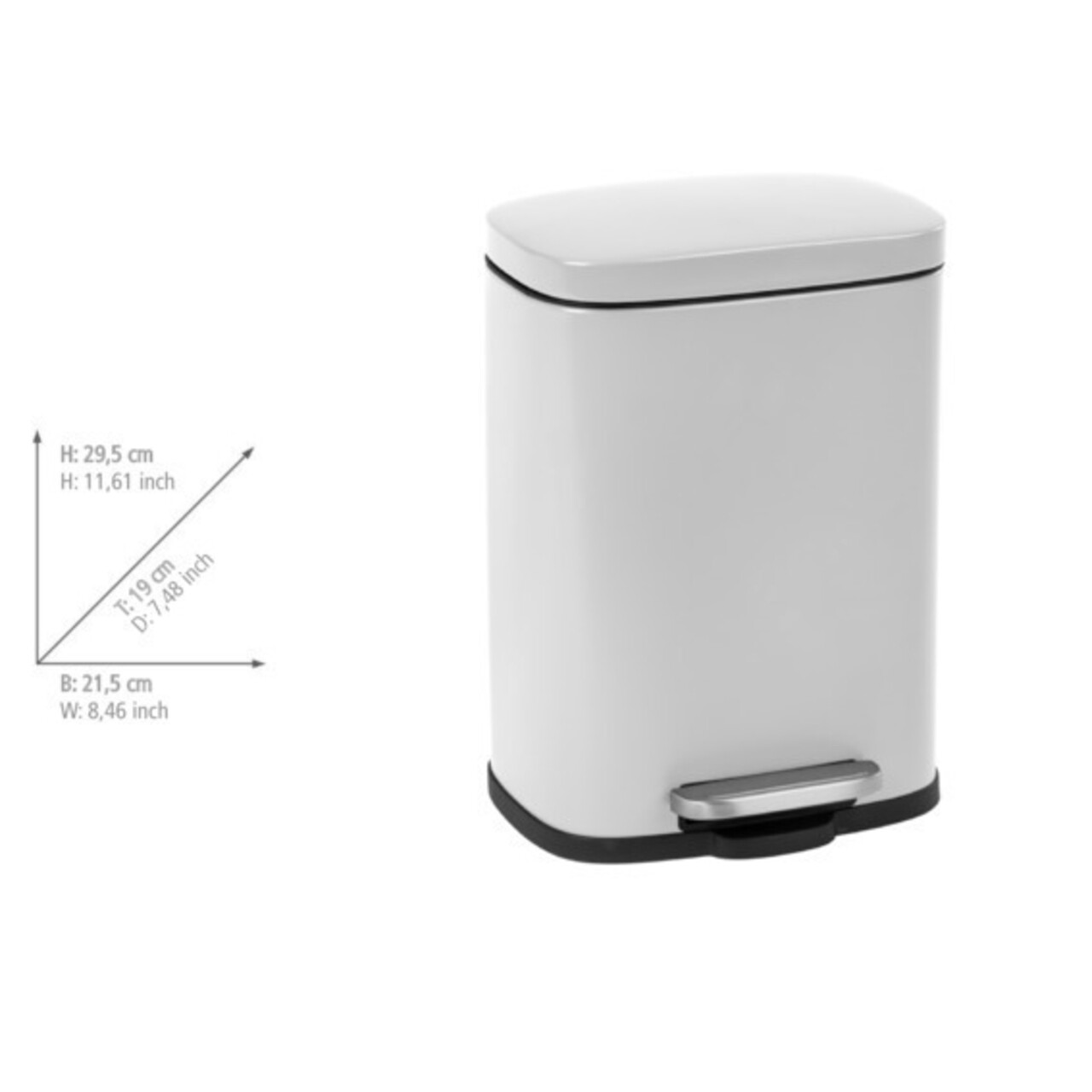 Cos de gunoi cu pedala Leno, Wenko, 21.5x19x29.5 cm, otel/polipropilena, alb/negru