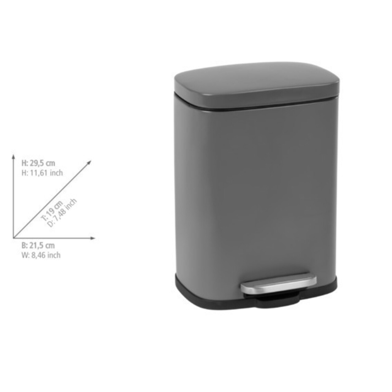 Cos de gunoi cu pedala Leno, Wenko, 21.5x19x29.5 cm, otel/polipropilena, gri/negru