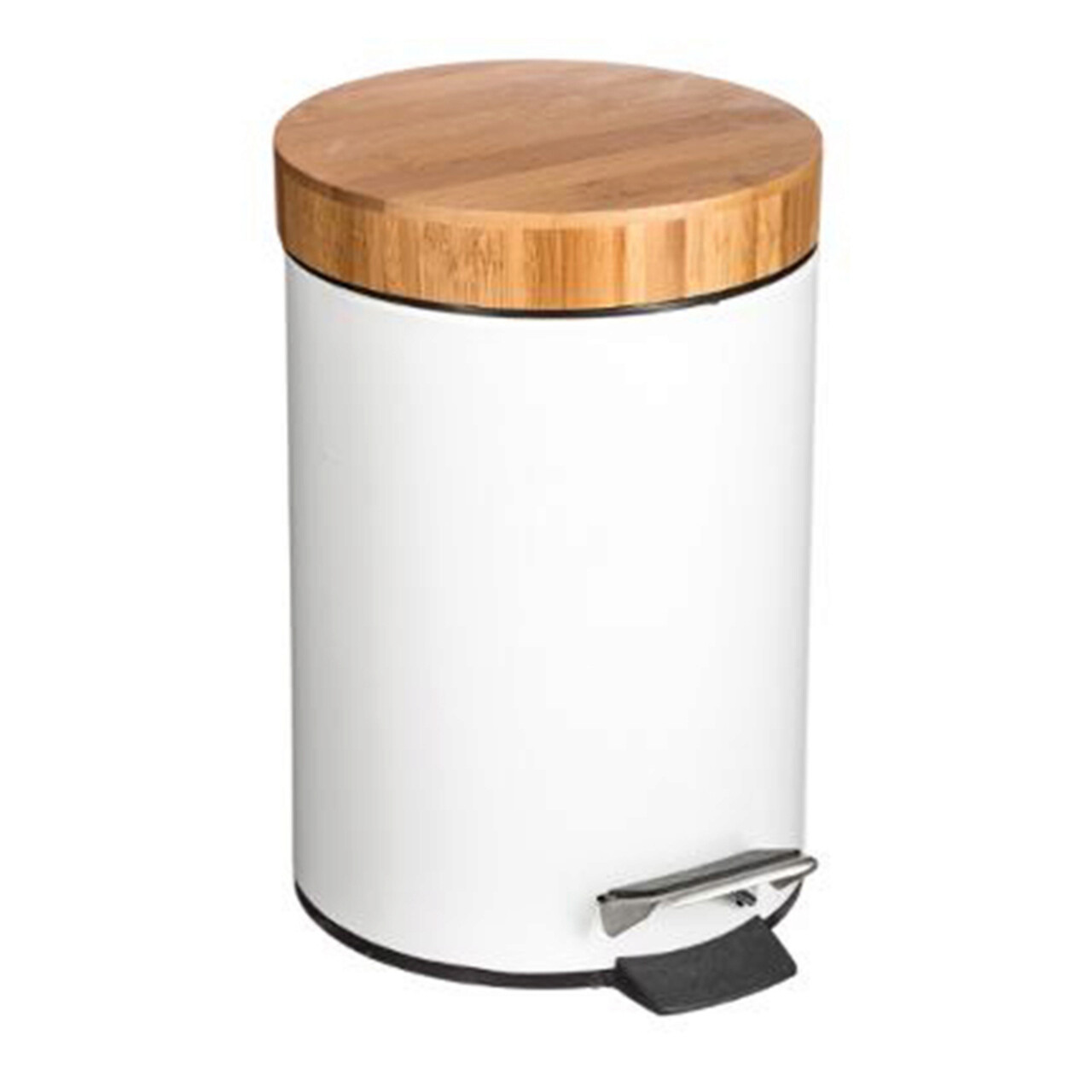Cos de gunoi cu pedala Nature, Pakoworld, 17x17x25.5 cm, polipropilena/bambus, alb/natural