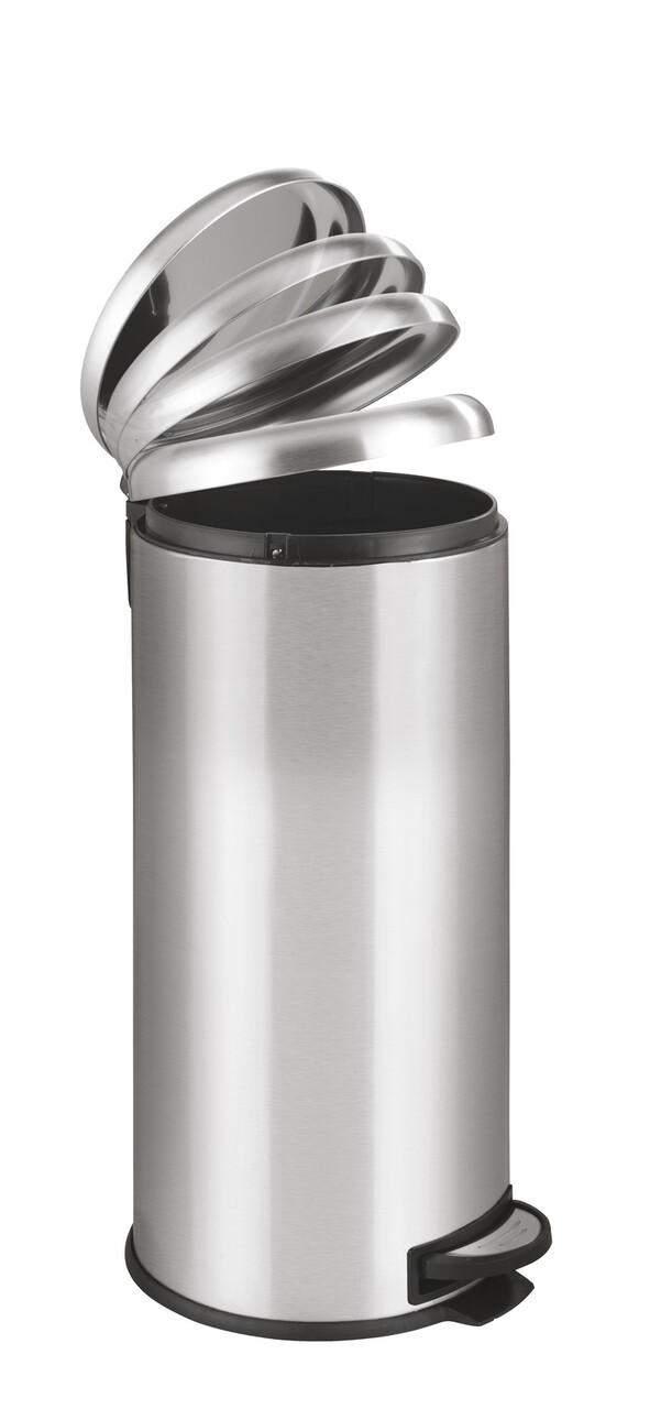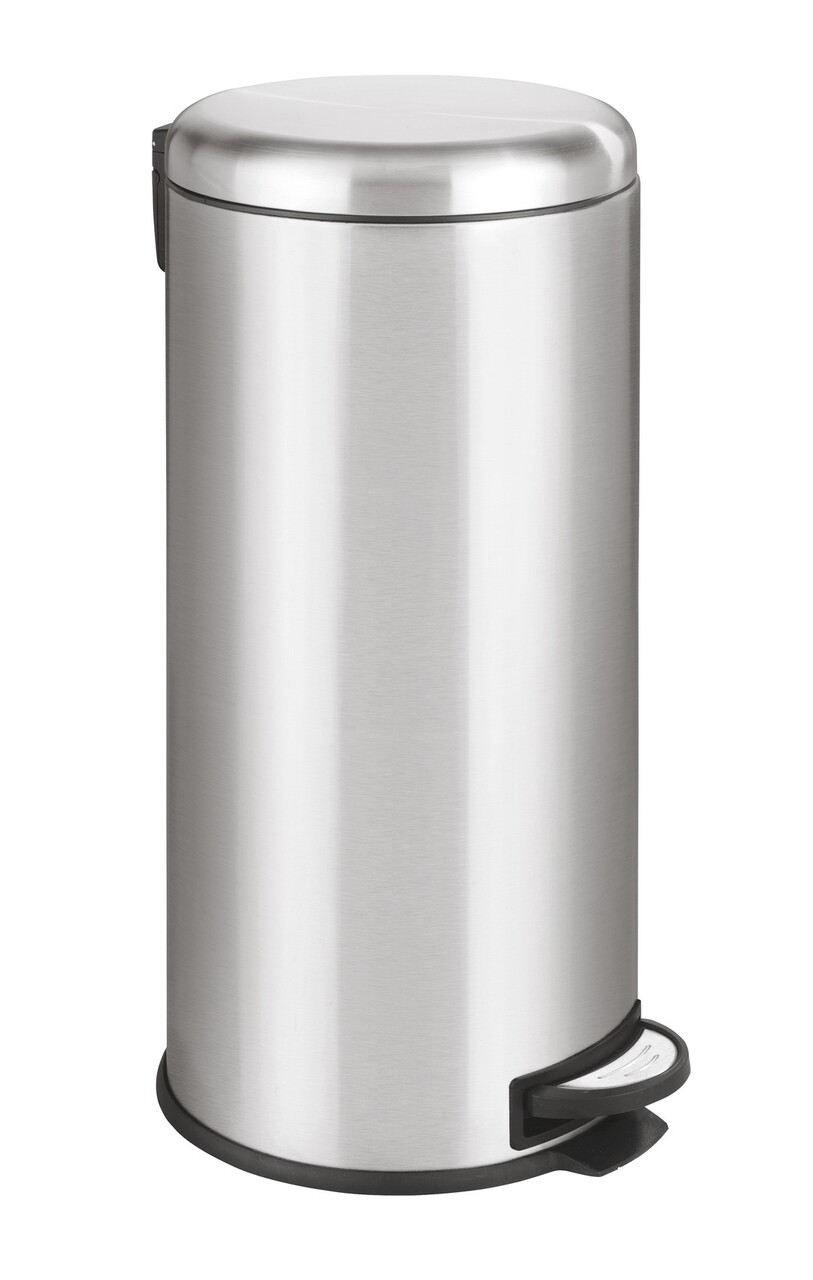 Cos de gunoi cu pedala, Wenko, Leman Easy Close, 30 L, inox, gri