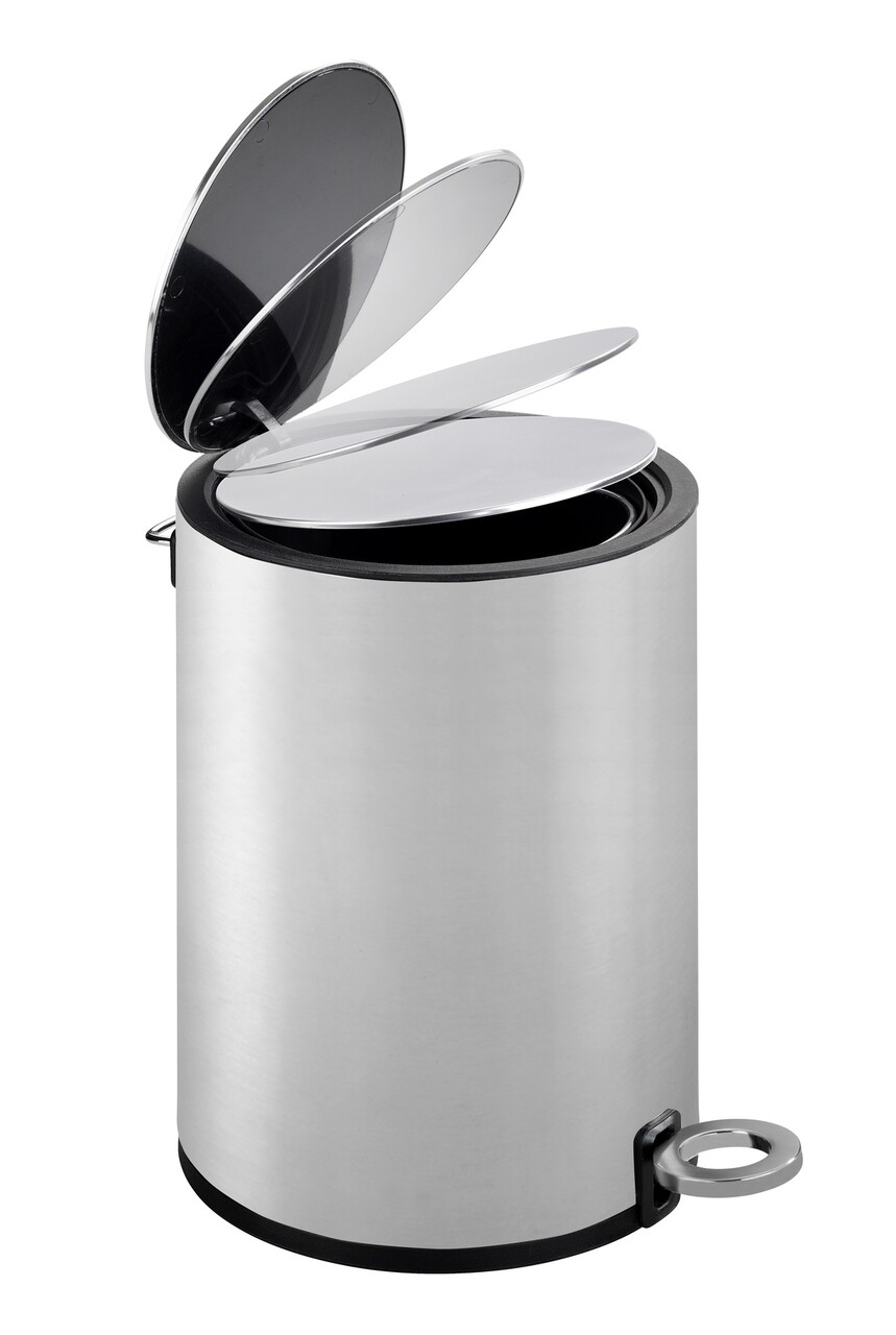 Cos de gunoi cu pedala, Wenko, Monza Easy Close, 3 L, 24.5 x 25.5 x 18.5 cm, inox, gri satinat