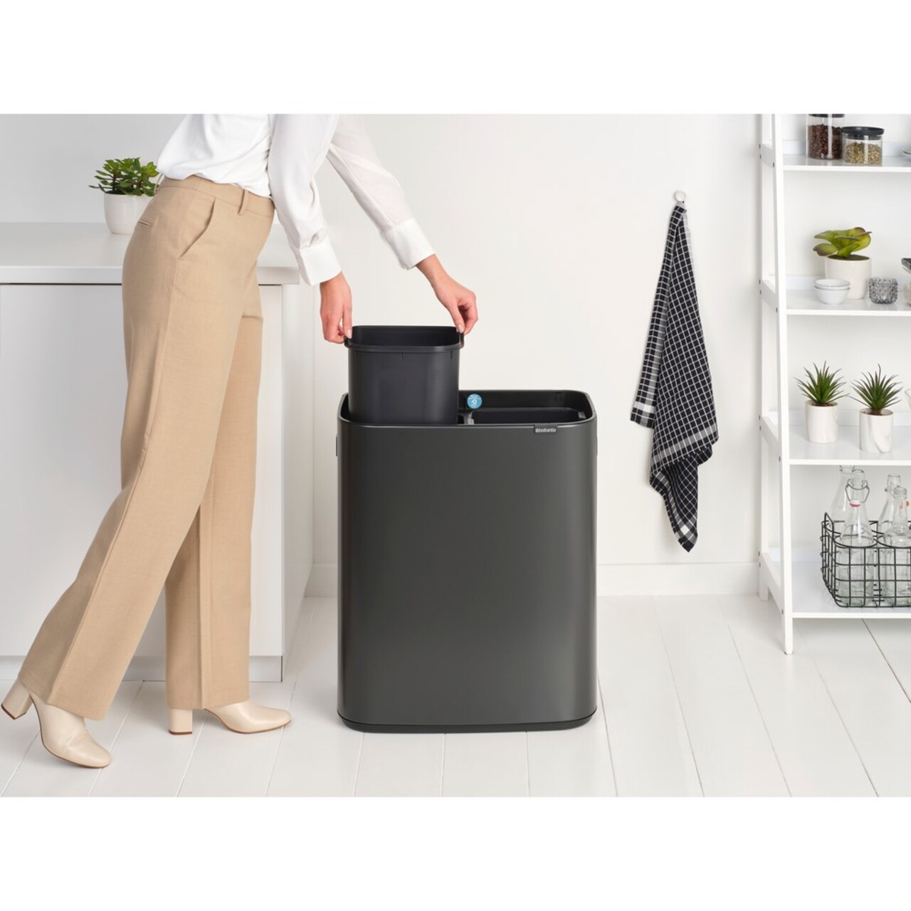 Cosul XXL Brabantia Bo Touch 2 x 30 litri are un design deosebit si tot ce iti trebuie pentru o separare usoara a deseurilor acasa. Dispune de doua galeti interioare spatioase si detasabile pentru doua tipuri de deseuri. Se deschide la cea mai usoara atingere, se potriveste perfect langa perete si este foarte stabil datorita picioarelor reglabile antiderapante. Dubla valoare intr-un singur loc.