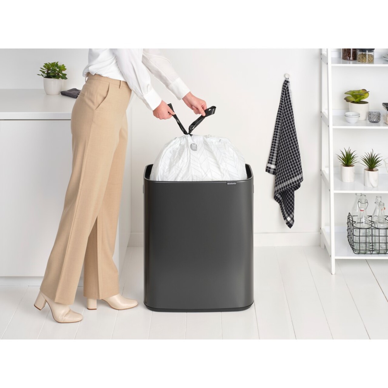 La acest tip de cos se potrivesc sacii de gunoi Brabantia, marimea M. Are inclus si un set de saci de gunoi.