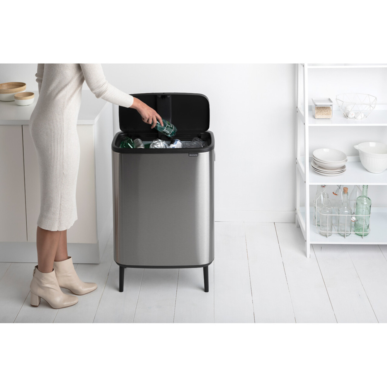 Acesta este cosul Brabantia Bo Touch Bin Hi! Aceasta frumusete XXL de 60 litri are patru picioare elegante, un sistem de deschidere Soft-Touch si maneri integrate. Se deschide la cea mai usoara atingere si este creat cu dragoste pentru casa ta si cu grija pentru planeta. Un mare ajutor pentru orice gospodarie.
