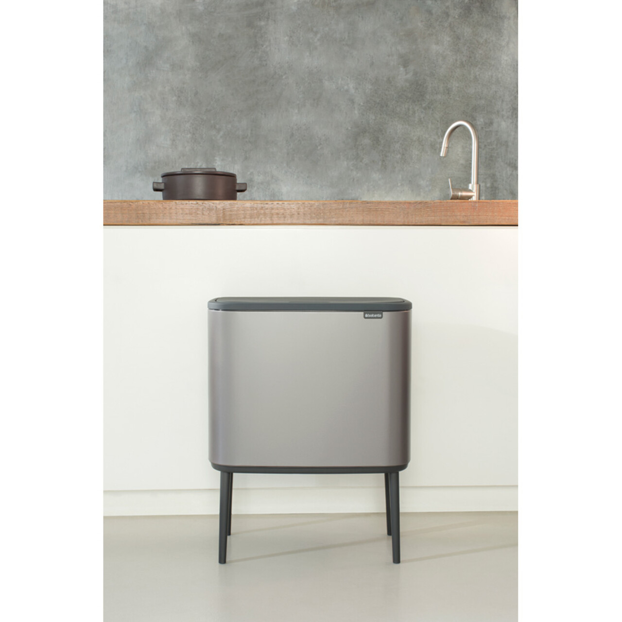 Cos de gunoi cu soft touch, Brabantia, Bo Touch Platinum, 11/23 L, 31.2x54x68 cm, otel, gri